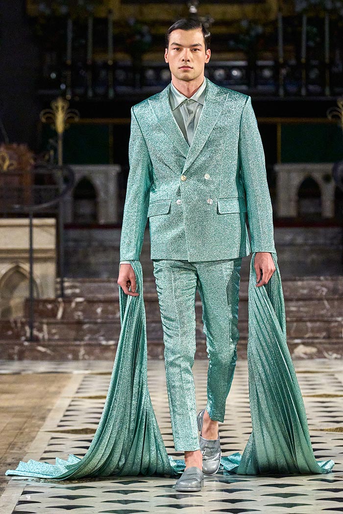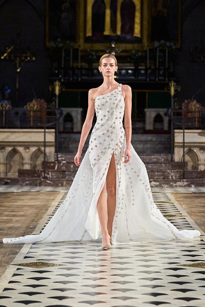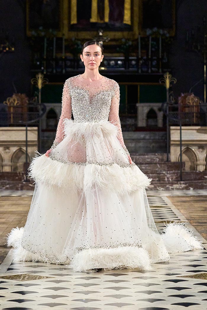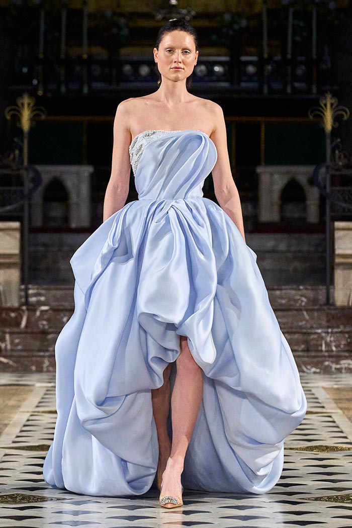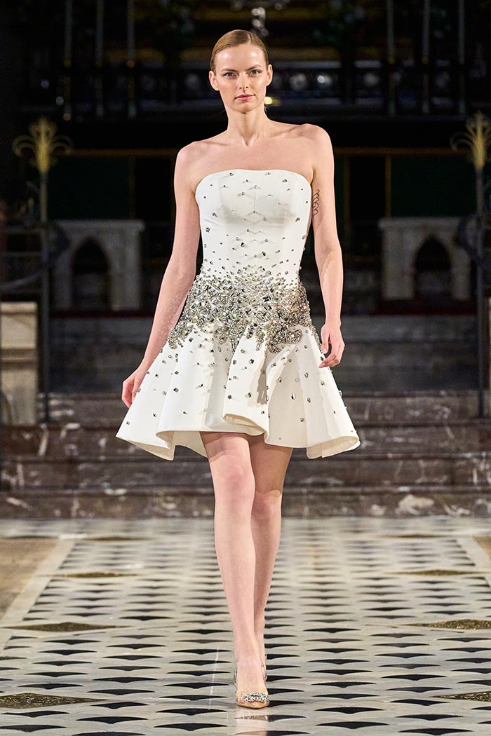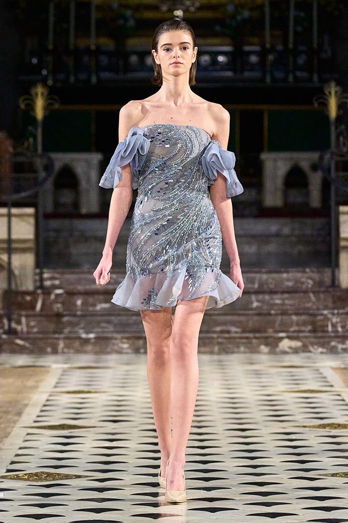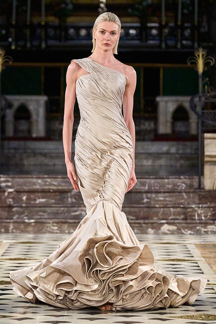 My inspirations came from the state within the country I live in Australia. The state of Victoria has many different natural surroundings from the beach side to to the rich Dark and wet forests. This collection I really wanted to soften the look of my pallet. The richness of colours and textures are very moody and light, playing with architectural Silhouettes, soft silks, incorporated with the richness of the Signature delicate beading which the brand is synonymously known for.