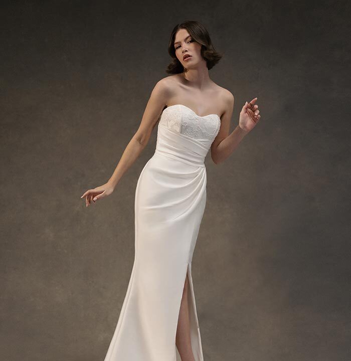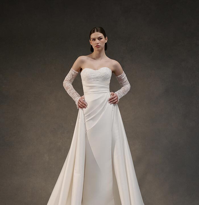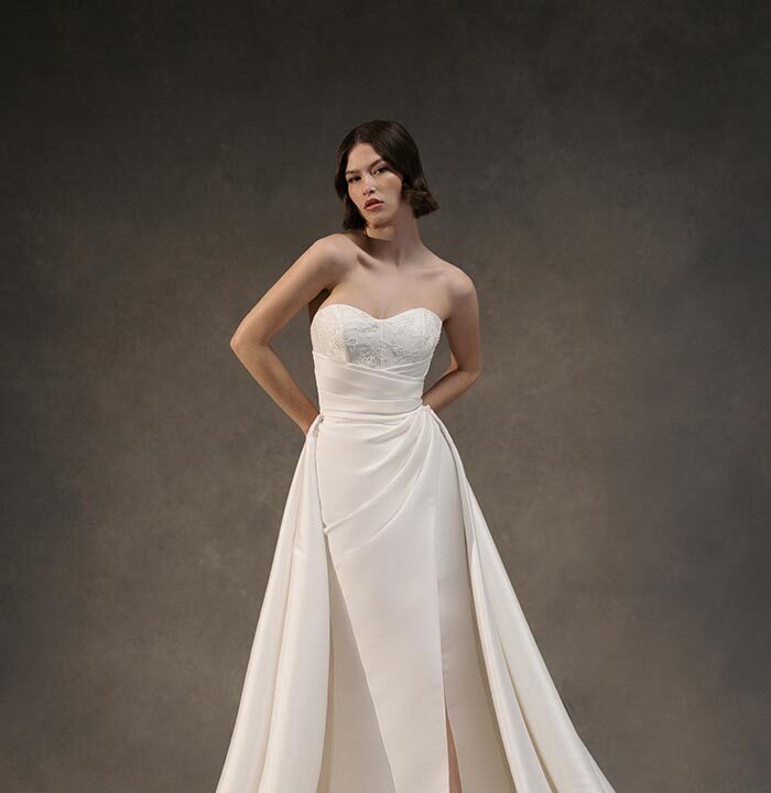 The five-piece collection is thoughtfully designed with versatility in mind, offering brides the freedom to mix and match each look to reflect their personal style. This season, the collection debuts a stunning new paisley and floral corded lace- a fresh, intricate take on a timeless motif – adding texture and romance to select gowns. Throughout the collection, meticulous draping and hand-pleating details highlight the craftsmanship behind each piece, creating movement, dimension, and an effortlessly modern yet classic bridal aesthetic. Every gown in the collection was proudly designed and made in our Atlanta design studio.