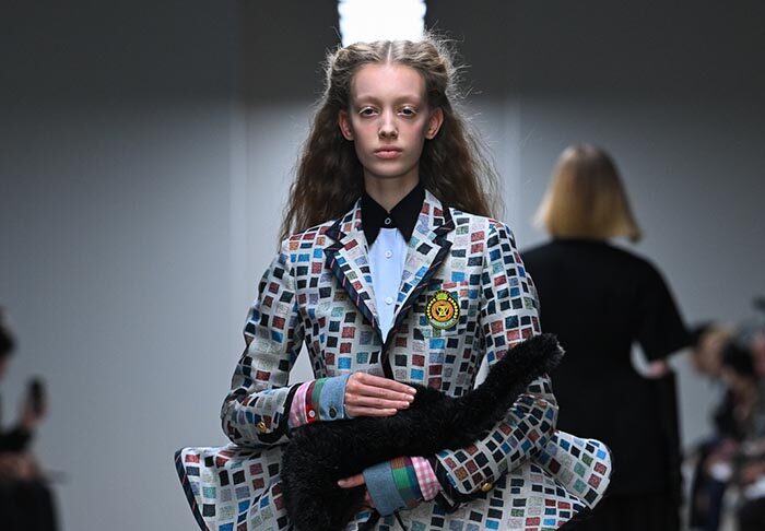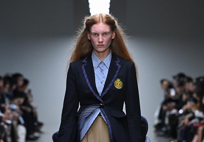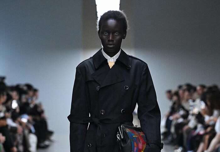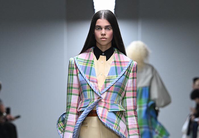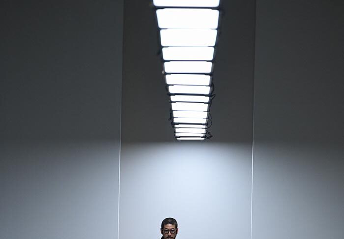 Continuing last season’s collaboration with Thomas Bangalter, the soundtrack ̶ created with HERALBONY ̶ layers the rhythm of a heartbeat against quotidian ‘noises’ made by people with disabilities. The organic, evocative soundtrack underscores what it means to be human in an age increasingly shaped by AI and technology.