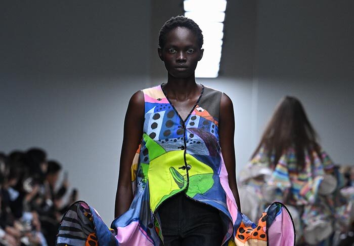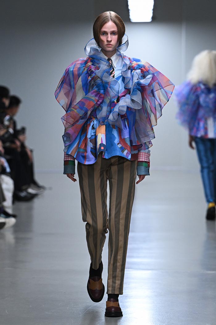 Building on the ethos of his Anrealage label, Morinaga uses clothing to probe the frontiers of perception: how each being experiences its environment in unique ways. Two parallel worlds, two different visions; how we see, and how others see. The viewer is invited to ask why we perceive different landscapes from the same place. Where does the boundary lie, and what is revealed when it is crossed? Fashion thus becomes a vessel for the heartbeat, honoring the beauty of difference as the purest celebration of life and resilience.