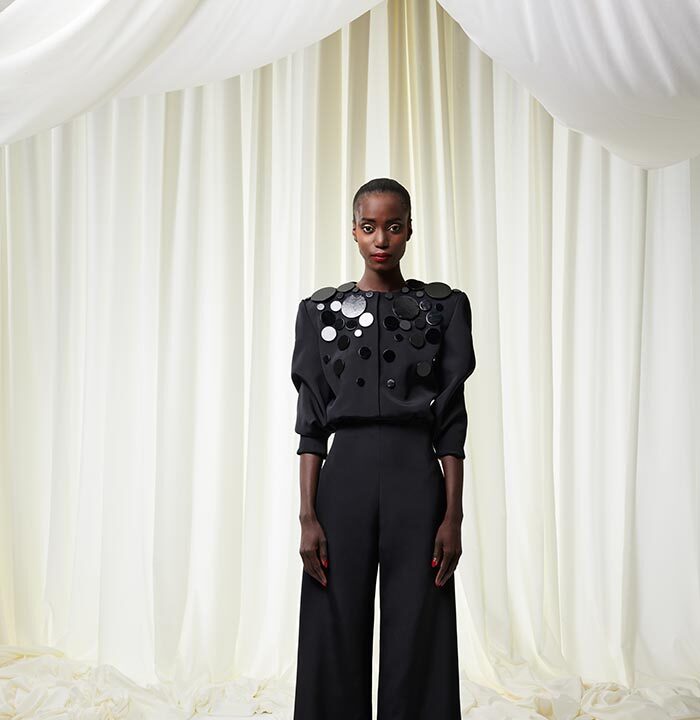 The collection, which amounts to a total of 25 outfits, is divided into 3 main garments: jumpsuits, mini-dresses and evening gowns.