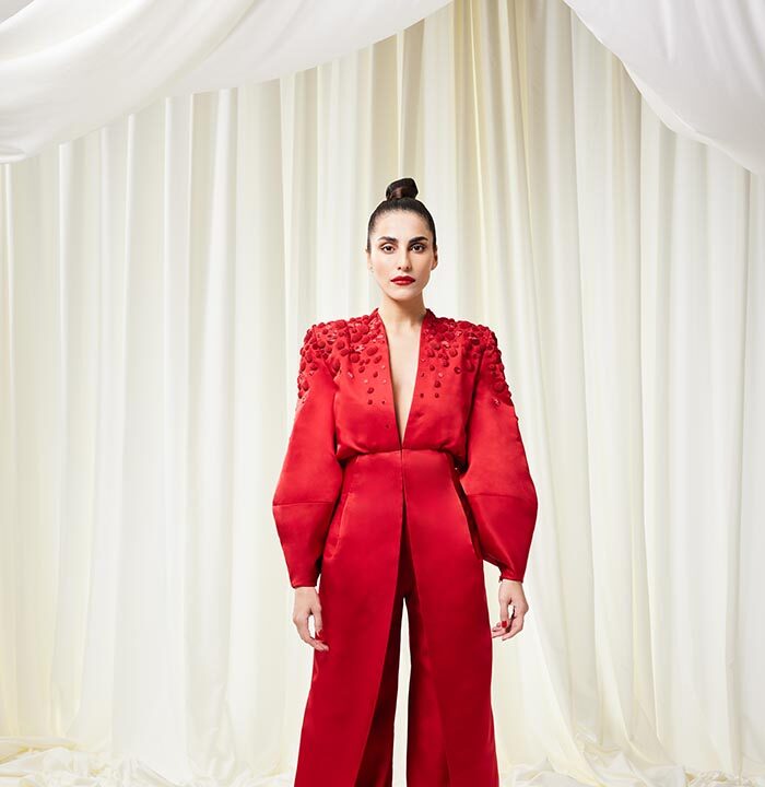 Antonio Grimaldi: “A tribute to women’s freedom. The protagonists of my new collection are two strong and courageous women: Taleedah, the first Saudi supermodel who made her debut on my catwalk in 2018 in Paris and who comes from a society that is proudly opening up to rights, and Farnoush, who instead represents a parallel world where rights are nowadays being denied.”