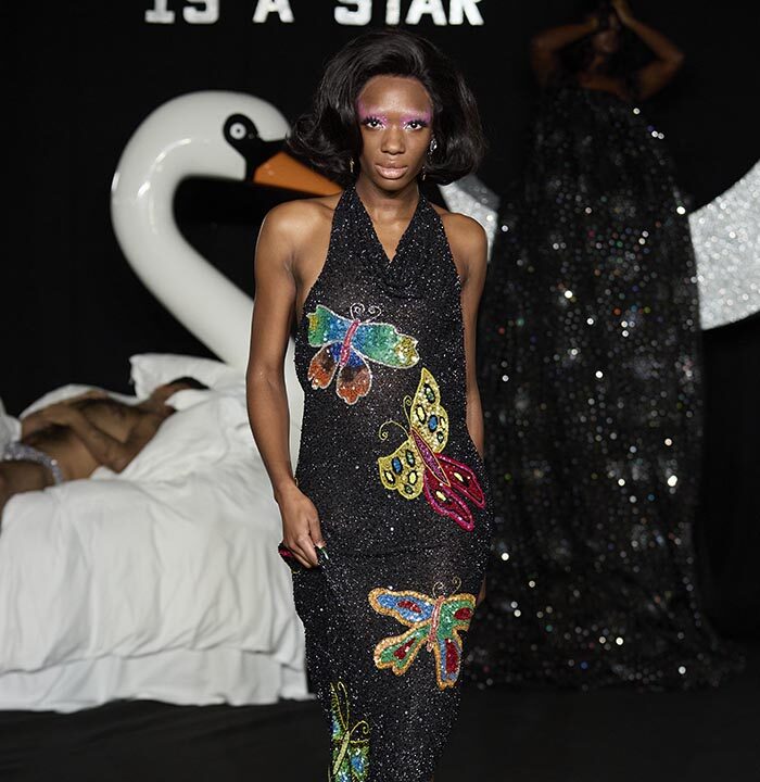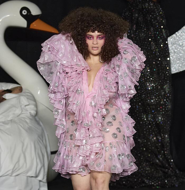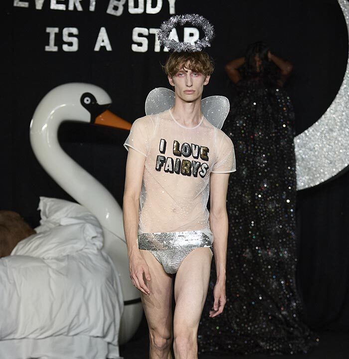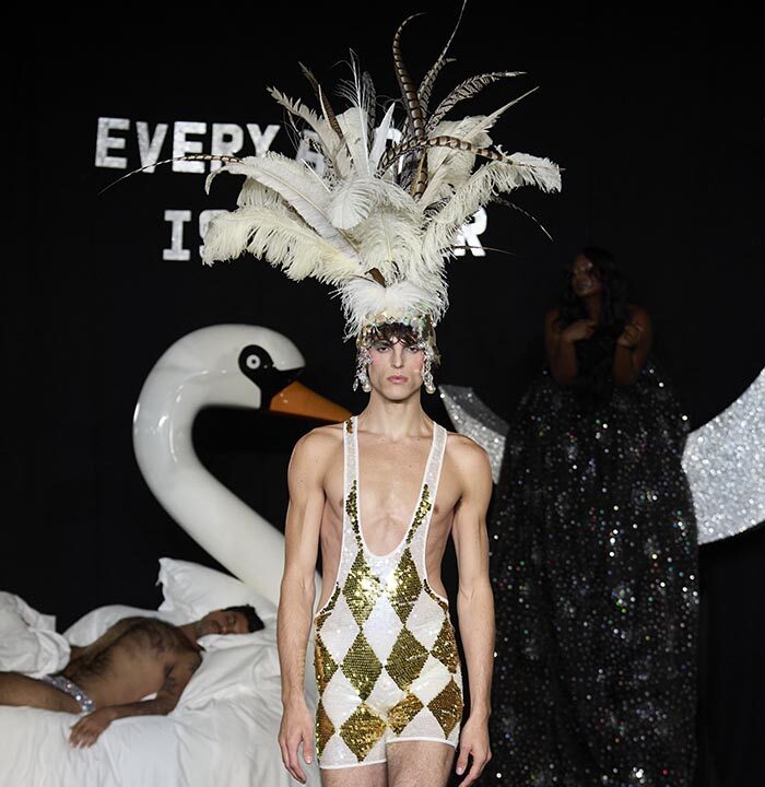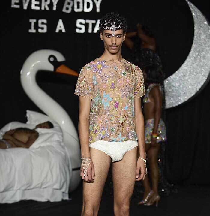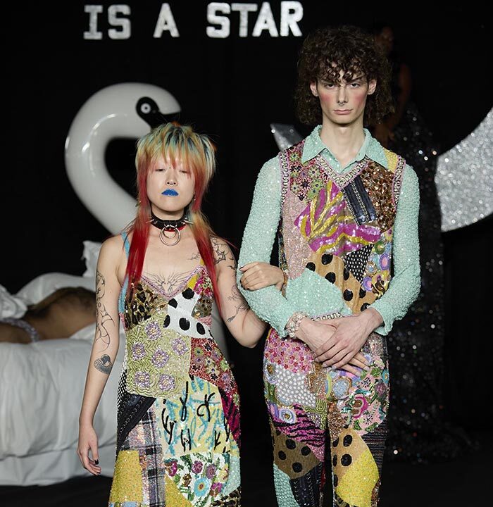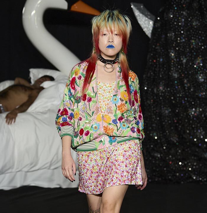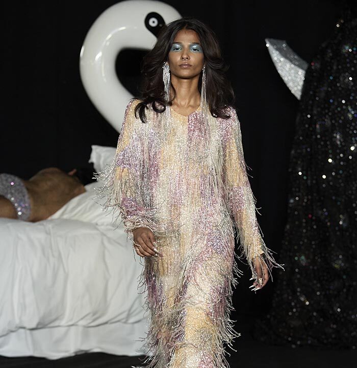 In a world where cultures, trends and politics ebb and flow this manifesto aims to question, probe and play with imaginations Ashish and Linder are intrigued by the clothes that we wear. They see them as bejewelled forms of protest, as well as ciphers for spontaneity and celebration. Tenderness is important, as is the cultivation of our dreams, both personal and collective. Ashish works with sequins and Linder with the halftone dot, they each know the value of exquisite detail and positioning. Our sleeping beauties occupy the real world and the dream world simultaneously. Here, you will witness figures moving through the spaces as if from a dream but the air of the dream is seen as much as felt, playing with voice, tempo, crepuscular light and intimate spectacle.