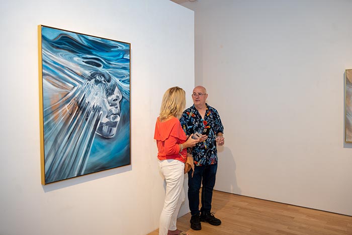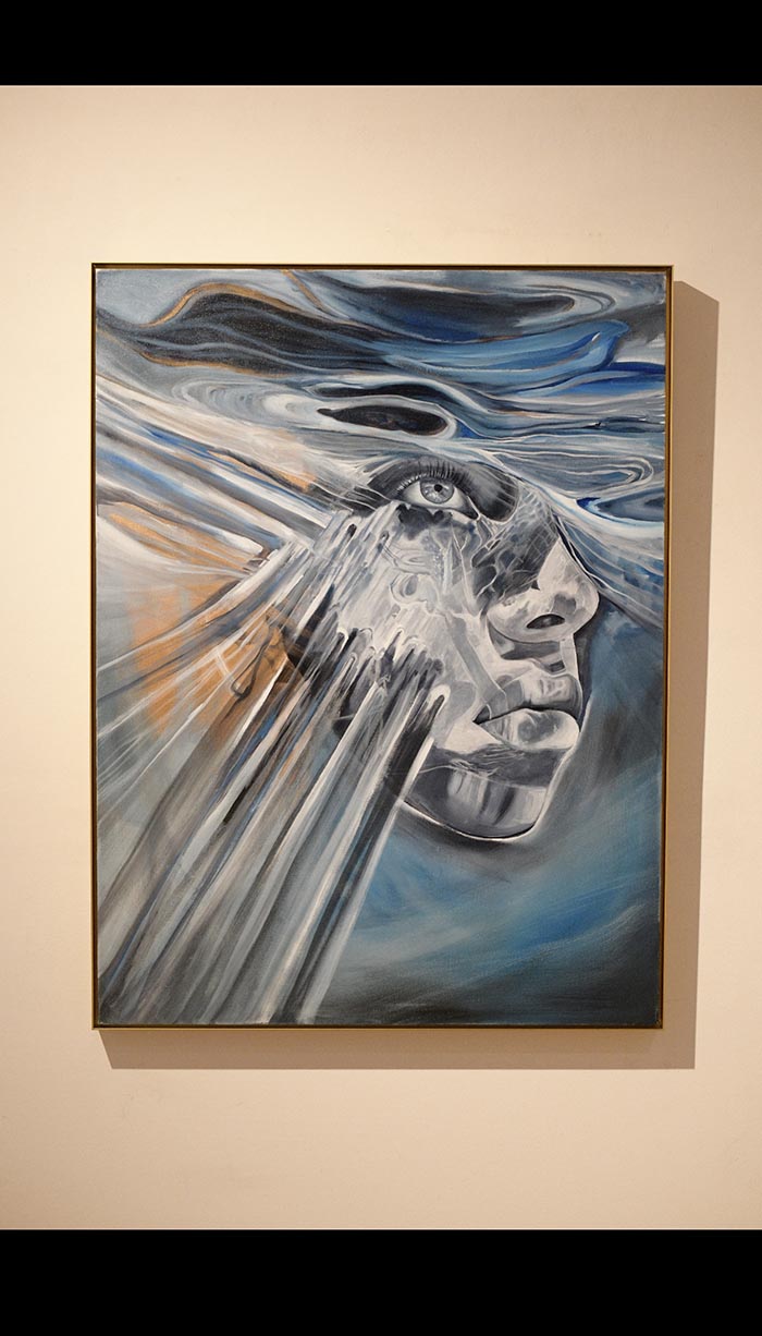 A recurring motif throughout the series is the ocean, rendered not as backdrop but as protagonist. Vast, turbulent yet calm, overwhelming yet cleansing, the sea becomes a mirror for the human condition. Its shifting currents echo the fluid states of the inner life, shaping and reshaping the psyche’s depths with every brushstroke.