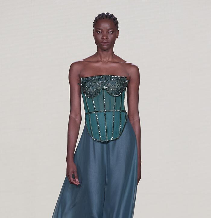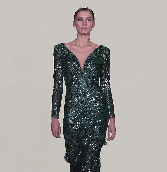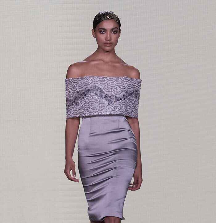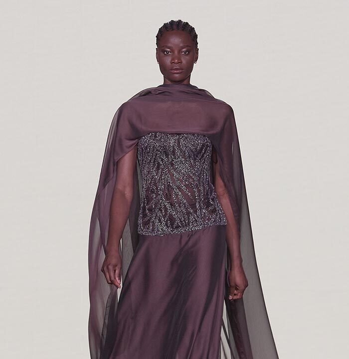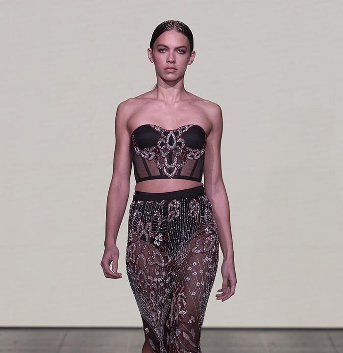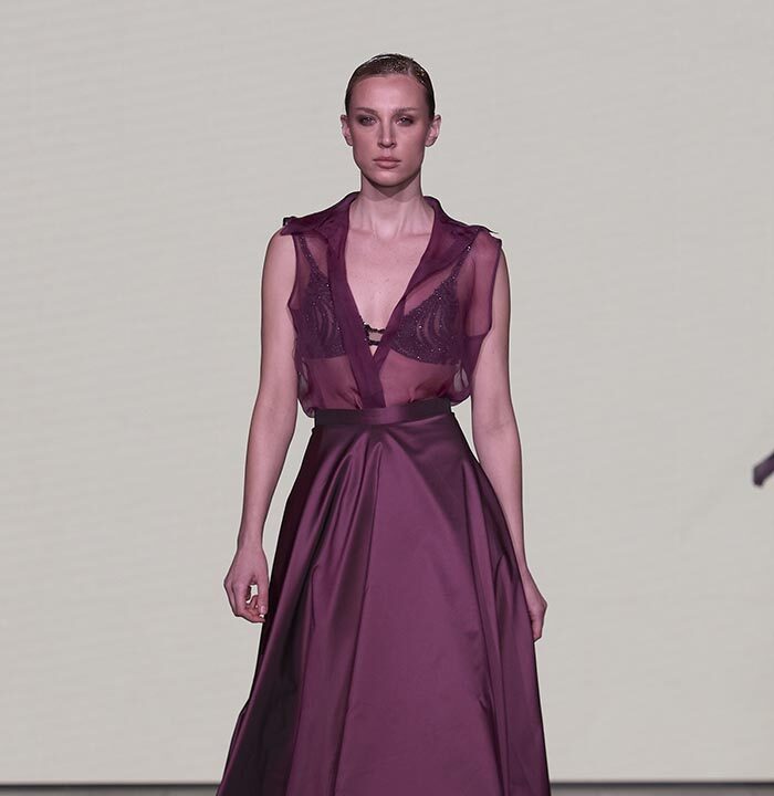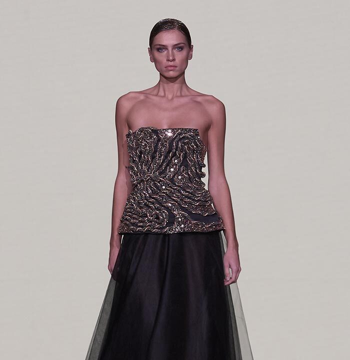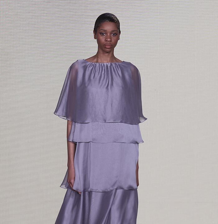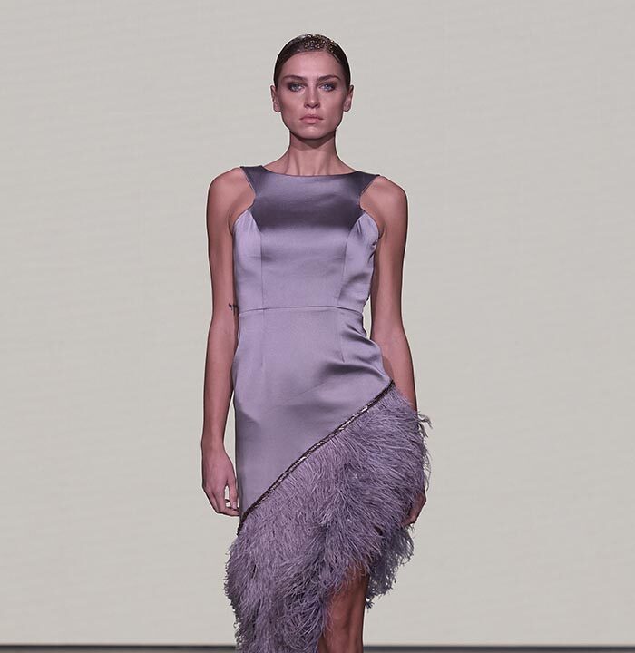 Bas-reliefs of Sumerian civilization show figures wearing skirts and dresses composed of woven cloth and tufted fabrics. The wrapped and draped clothes have influenced the dress of Greeks and Egyptians. Inspired by the chic Sumerian royalty, the designer used the materials and top-level workmanship of the same lands creating Legend Reborn – Sumerian royalty on the catwalk of London Fashion Week.