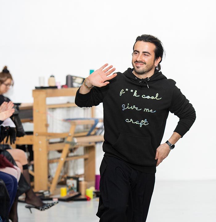 Benjamin Benmoyal debuted his eighth collection YARNS at Paris Fashion Week with a first catwalk show, heralding a poignant tribute to craftsmanship and weaving, a hallmark of his brand’s identity