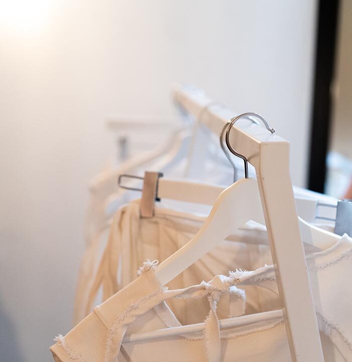 Together with the Textilhafen, W1P Studios collected secondhand materials and deadstock materials in all-white and out of natural fibers. Using only this source, W1P Studios created a whole new collection out of these otherwise discarded materials. They are the canvas for something completely new.