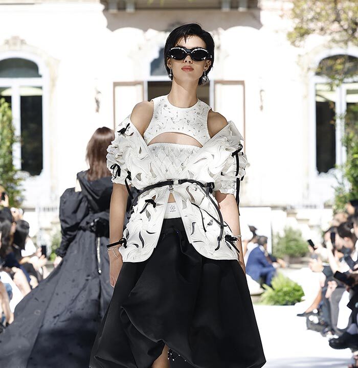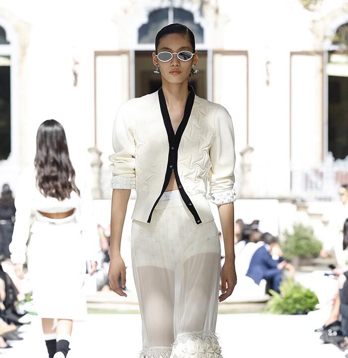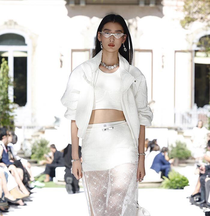 Technical innovations explore floral interlocking textures adorning pieces with intricate handcrafted techniques, breaking away from traditional “rib-like” stitching. Bosideng featured esteemed Italian lace craftsmanship and traditional Su embroidery from China, investing a minimum of 500 hours of craftsmanship in each piece.