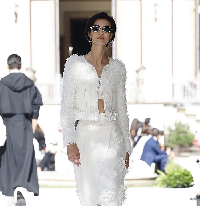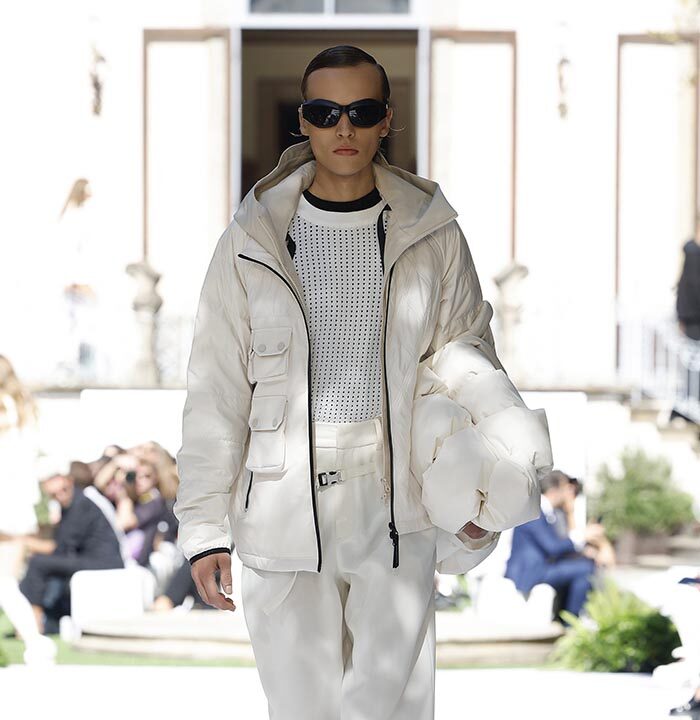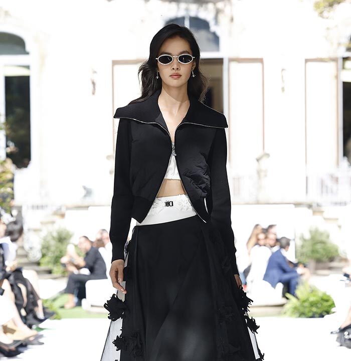Drawing inspiration from the Italian Renaissance and La Vigna di Leonardo’s architecture, Bosideng’s collection infused elements of Chinese and Italian cultures. The show was set amidst natural pathways and preserved Milanese charm, featuring themes of Leonardo da Vinci’s visions. The collection redefined weightless down jackets as “Versatile, Weightless, Warm, Contemporary,” breathing possibilities into Chinese and Italian cultures.