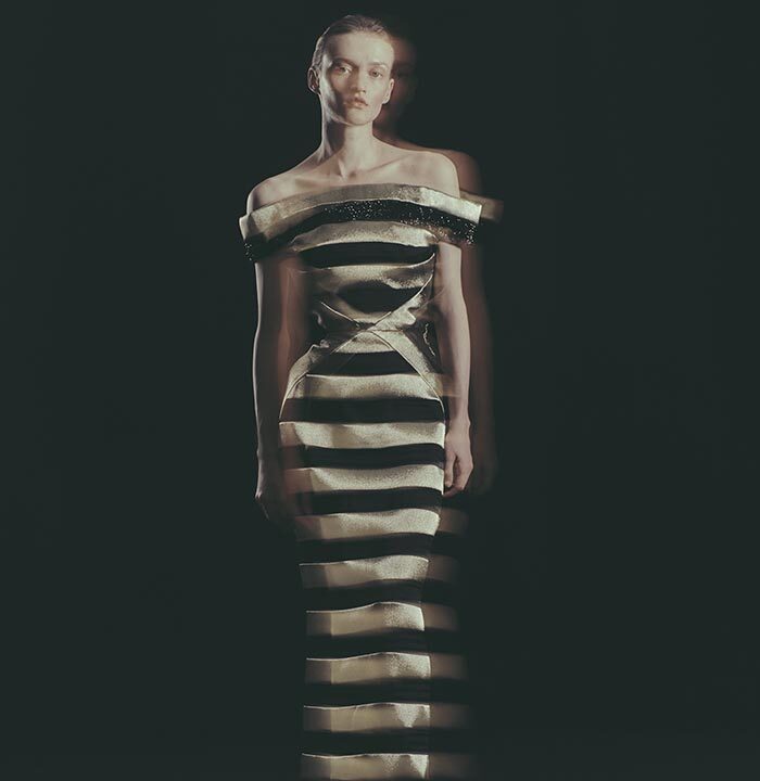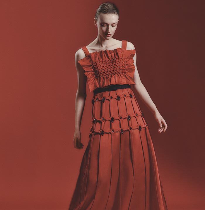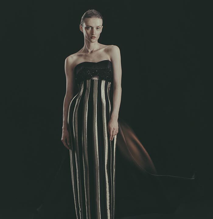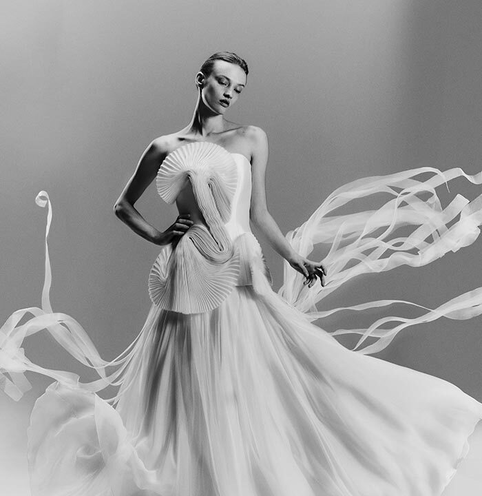 Guided by a singular aesthetic blending art and the refinement of Couture, Fang crafts unique looks that subtly radiate elegance and strength. Her work is a study in balance: gracious, powerful, and quietly transformative.