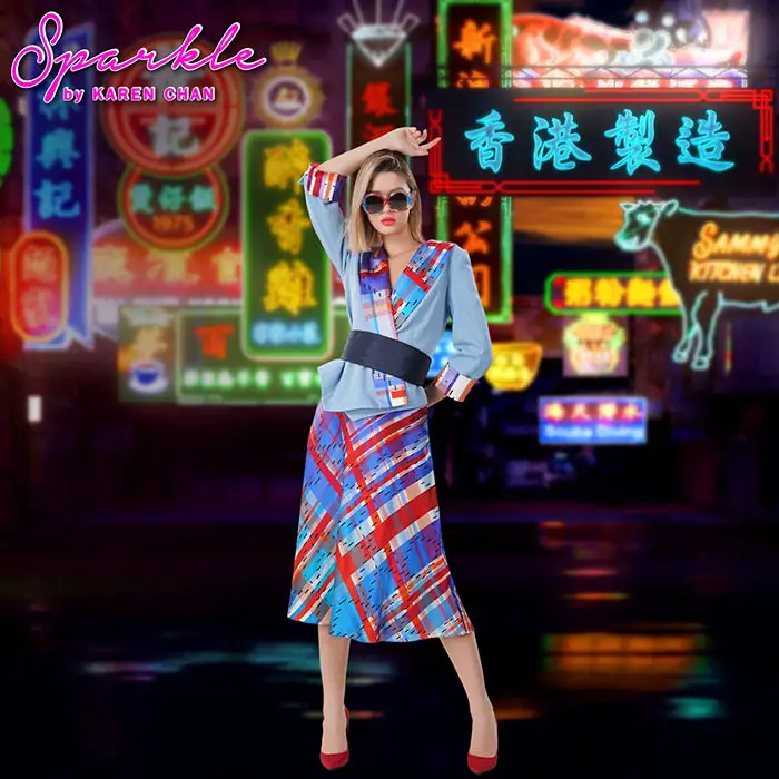 Another brand that features cultural elements in its designs is the creative Sparkle by Karen Chan founded by Karen Chan—a designer born and raised in Hong Kong with a special passion for the city’s iconic cheongsam. Using innovative printing technology to portray and draw attention to the important cultural scenes and heritage in Hong Kong, the brand offers a playful and unconventional interpretation of the Chinese dress in its Neon City Collection 2022 and Denim Cheongsam Collection 2022 that significantly reshape our understanding of art and traditional clothing.