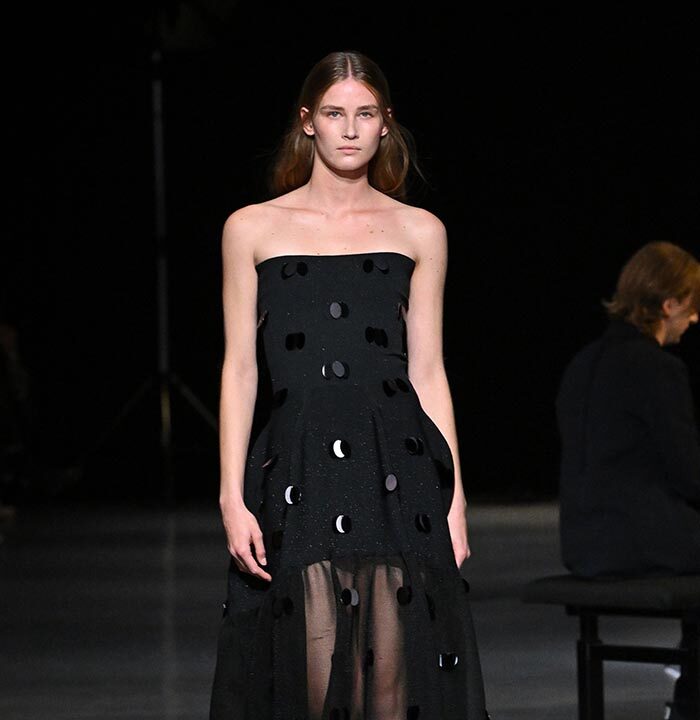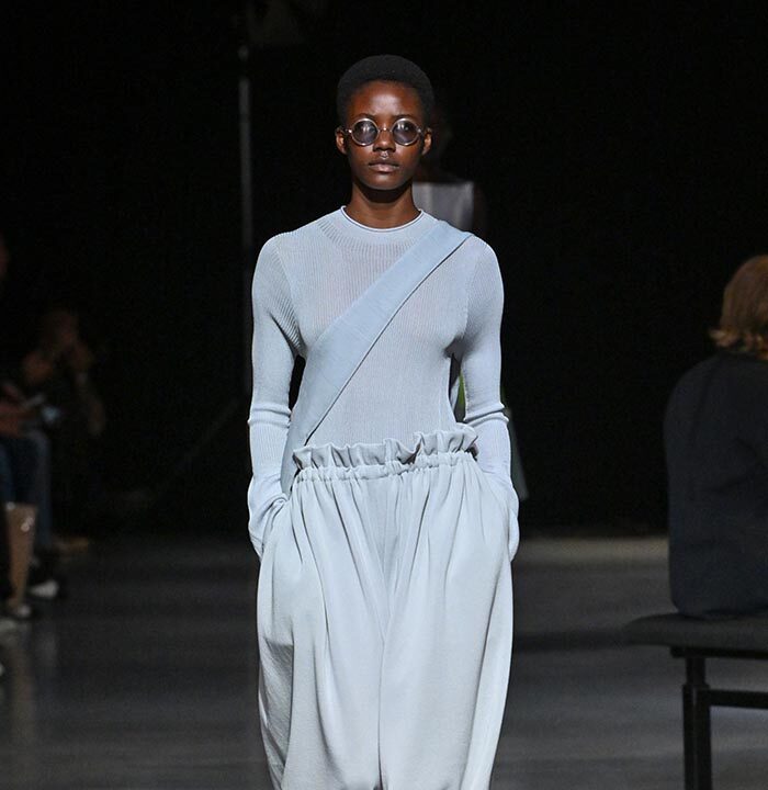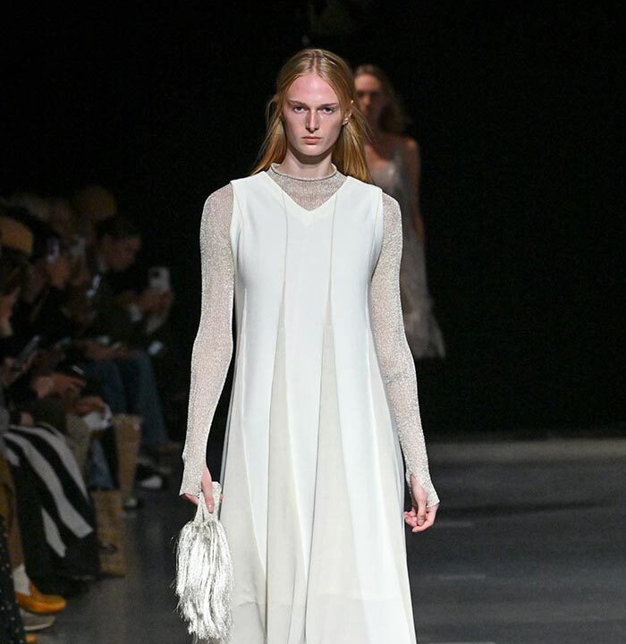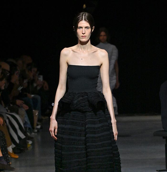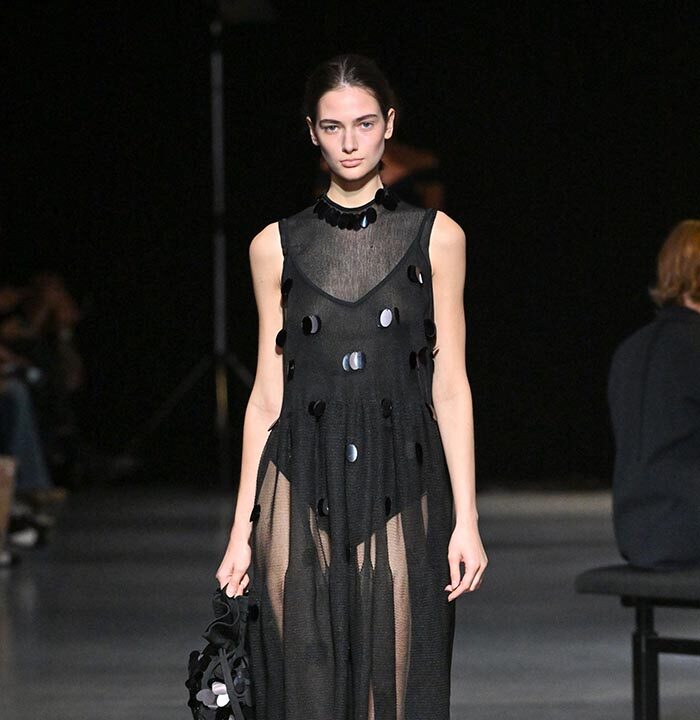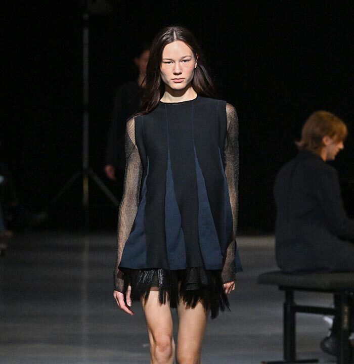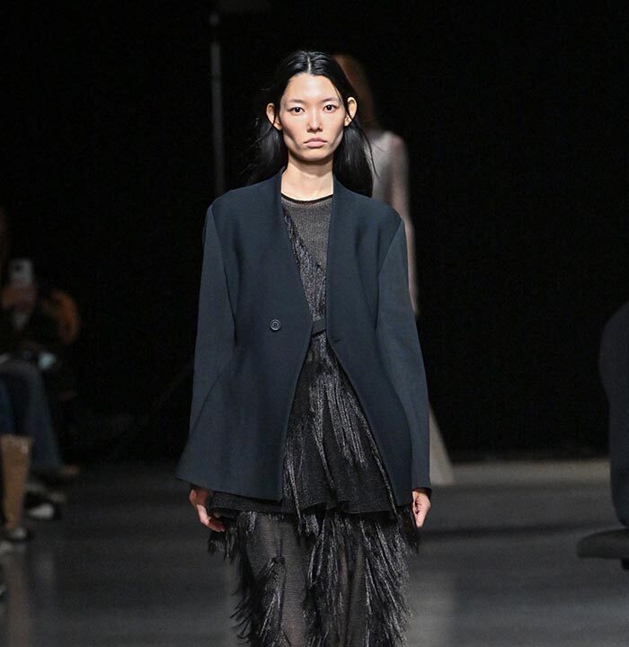 The collection redefines clothing as tools for daily life, combining transparency and soft, rounded silhouettes with a grounded portrayal of sophisticated women. Set in a venue reminiscent of a concert rehearsal, the performance featured the chamber ensemble TLF Trio, whose minimalist and fluid sounds created a relaxed and contemplative atmosphere.