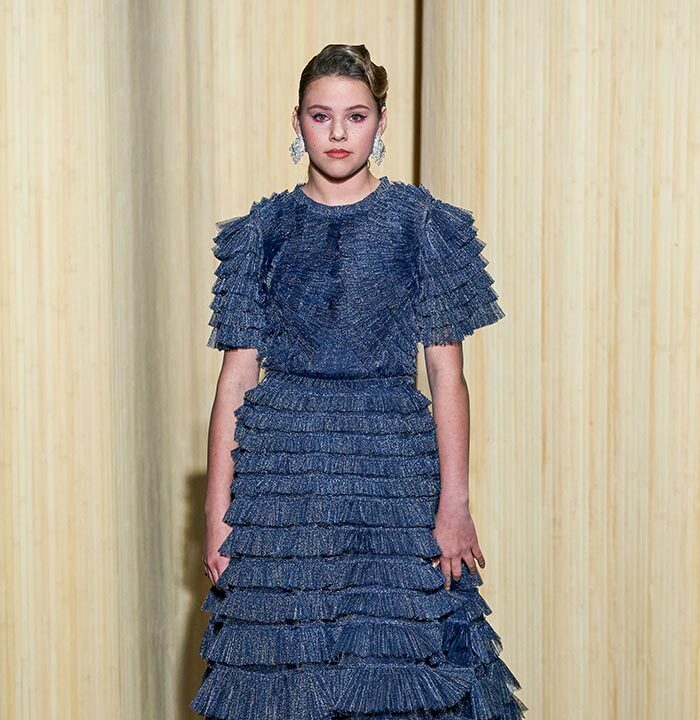 Maxi dresses in crumpled tulle reveal the audacity of this first muse of glamour. A sulphurous diva without self-censorship and an unbridled style.