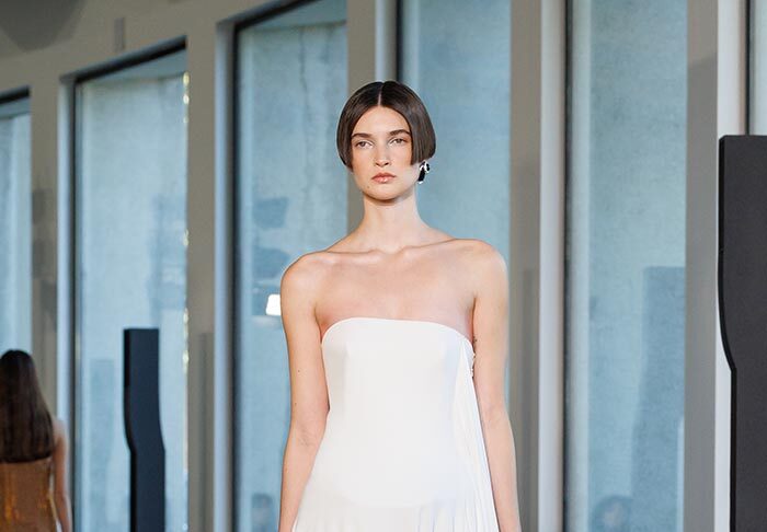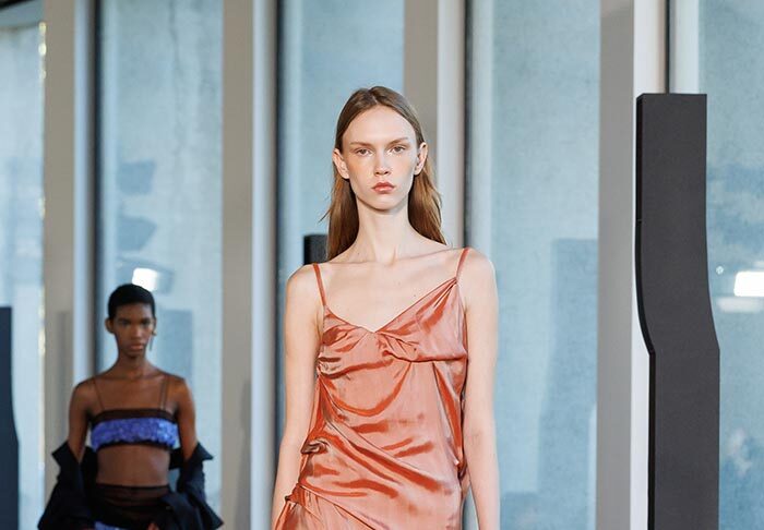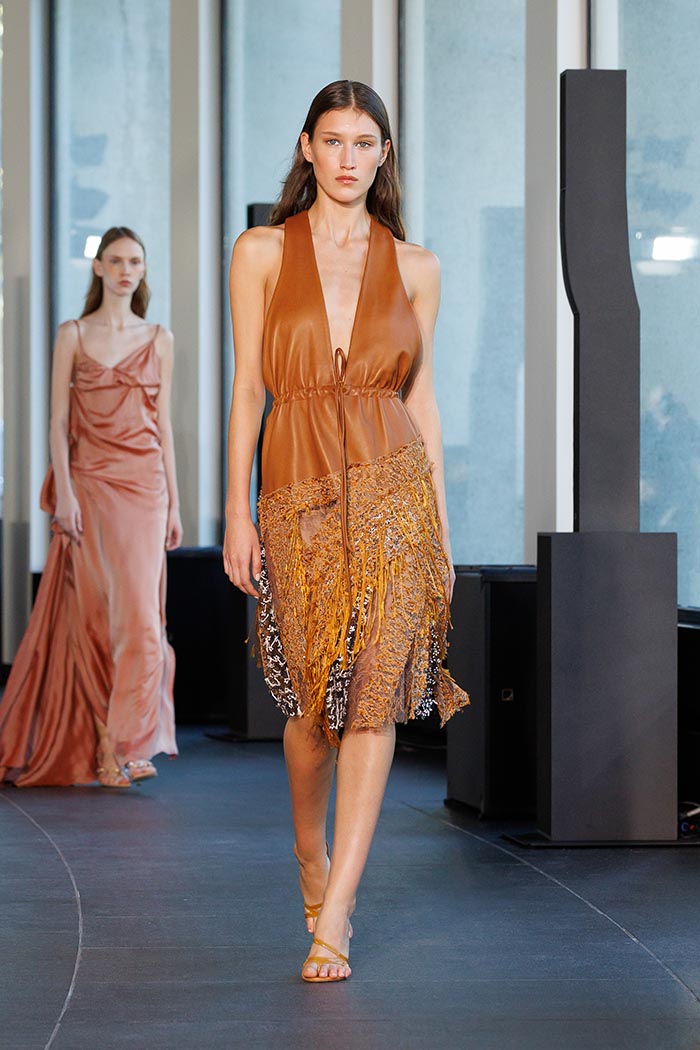 The collection references the work of artist john kacere, whose delicate nudes are enveloped by cloth That meanders and drapes around the form. His study of fabric in motion – thrown, re-wrapped, or slipping Away, informs the sensuous architecture of dresses and separates.