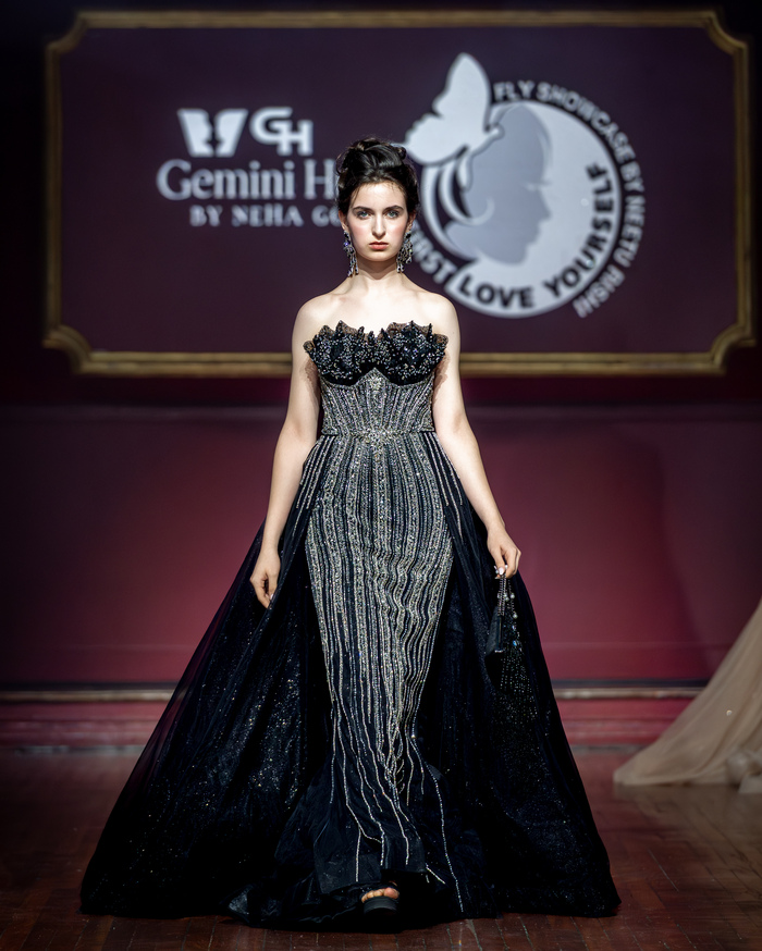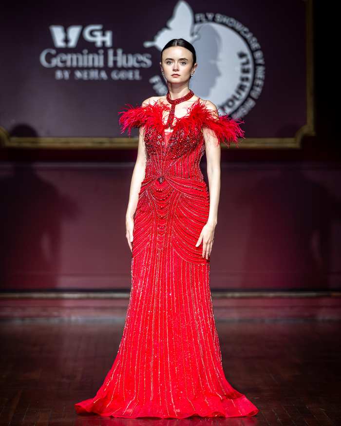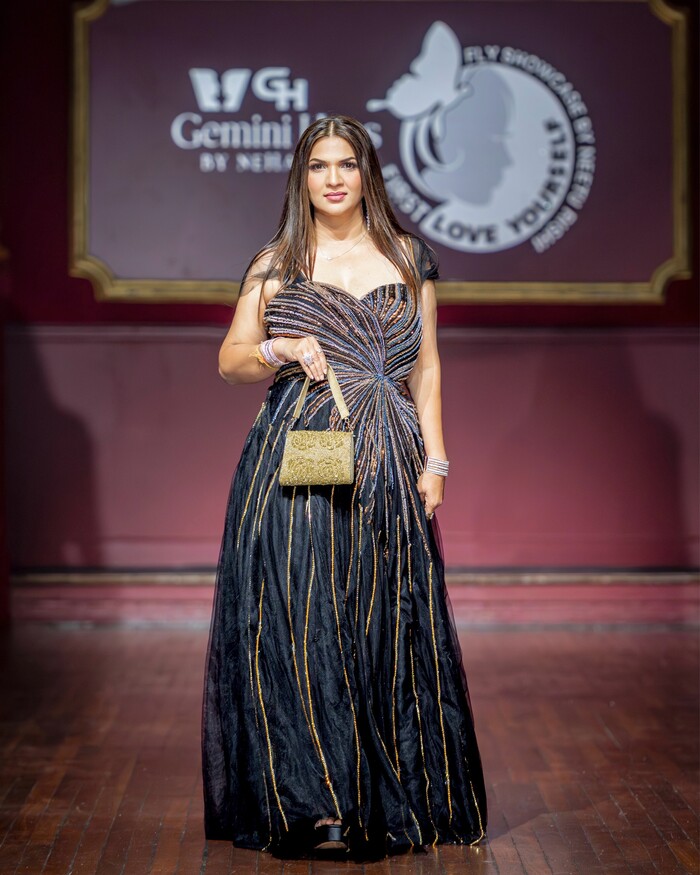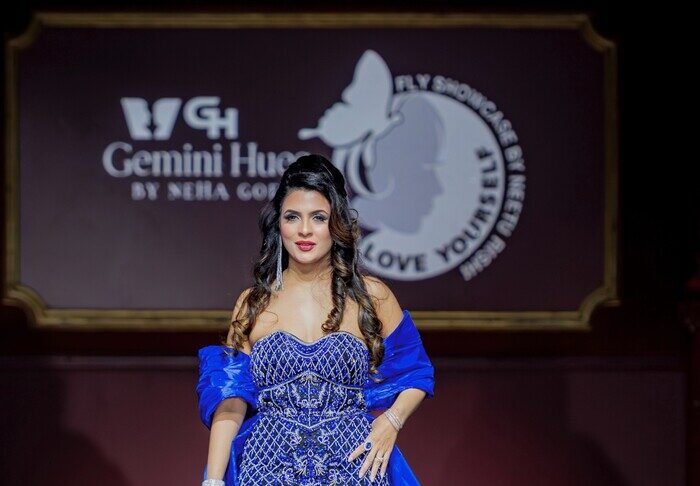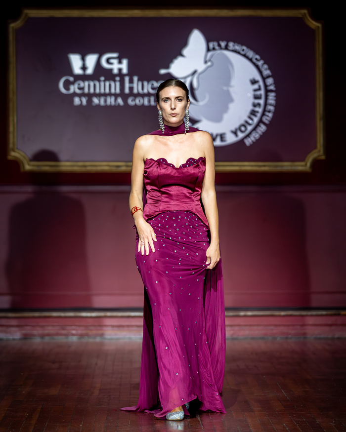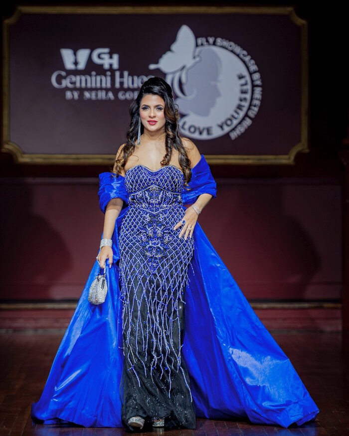 Founded by Neha Goel in July 2024, Gemini Hues is a luxury couture house that fuses traditional craftsmanship with modern artistry. Known for its intricate detailing, bold silhouettes, and emotionally resonant storytelling, the brand’s signature philosophy —multifaceted women inclusivity— inspires women to embrace confidence, authenticity, and grace irrespective of age, size, color, caste or creed.