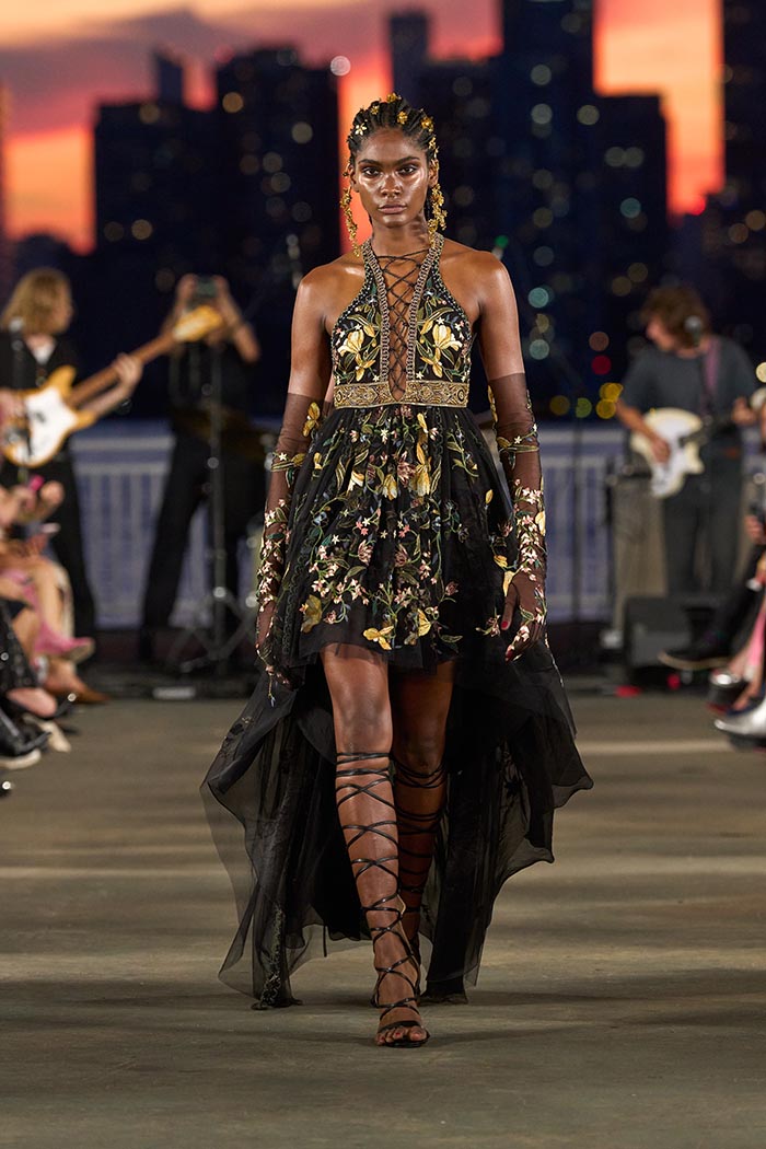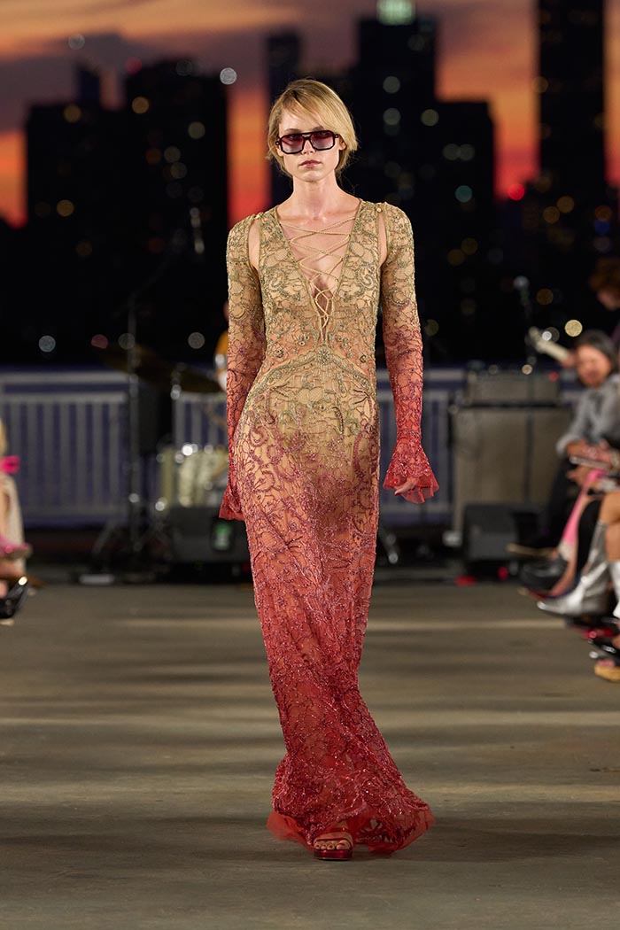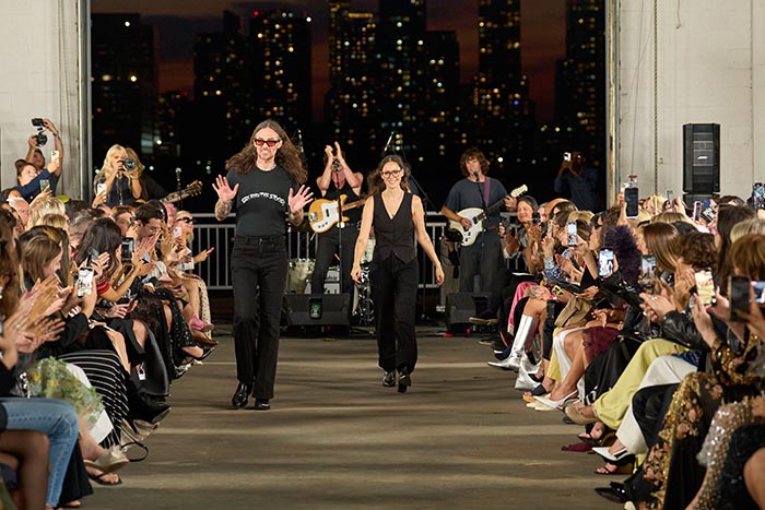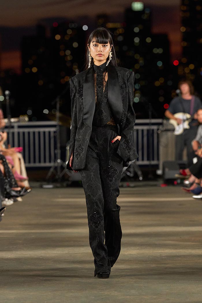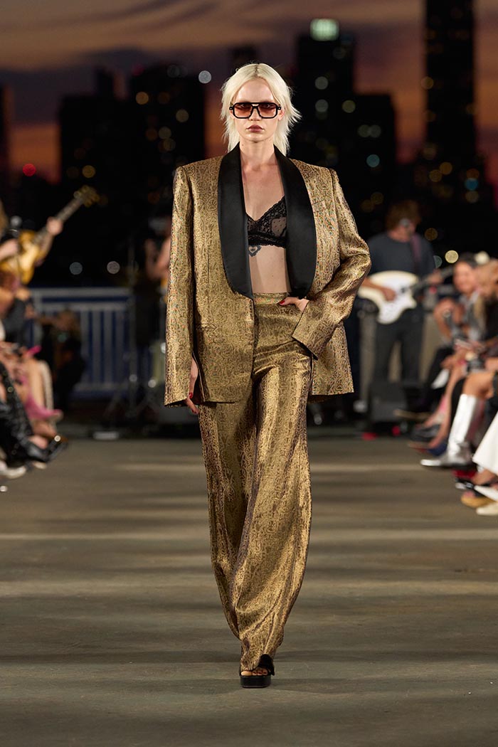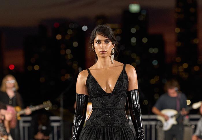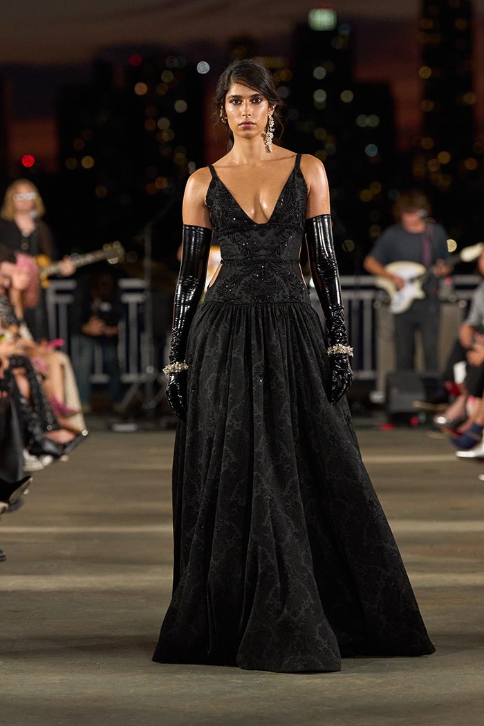The atmosphere amplified the vibrancy of the designs, underscoring the bold and dynamic vision of designers Anna Shaheen and Anthony Cucculelli. The Thing’s raw, rock-and-roll energy carried the momentum of the runway, weaving music and fashion together into a shared rhythm of romance and rebellion.