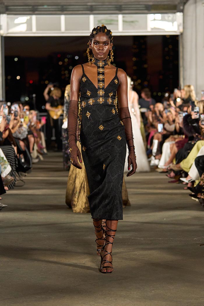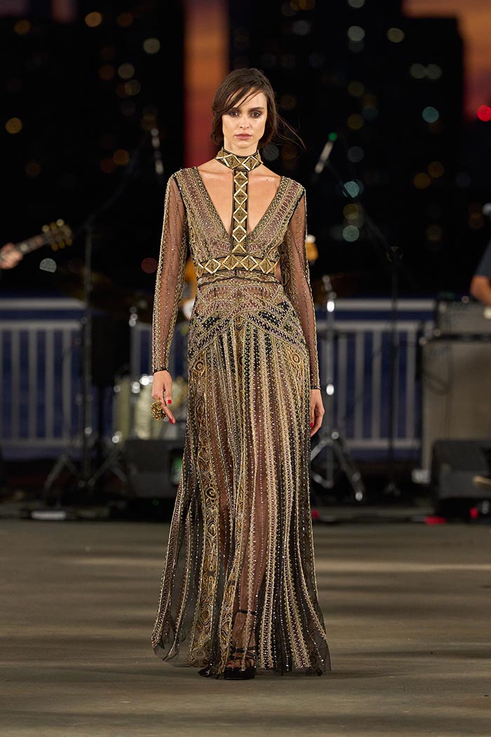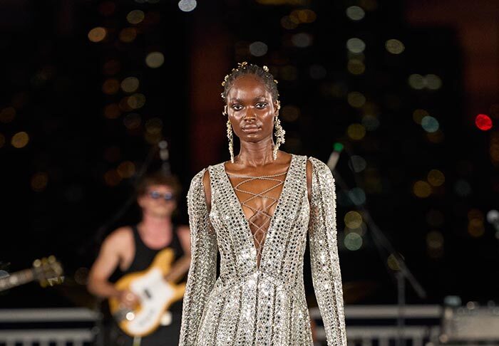 Intricate embroideries and hand-embellished details reflected the brand’s handcrafted artistry, with fluid fabrics and sculptural silhouettes conveying a sense of constant motion. The palette and textures highlighted transformational flashes of light, shifting moods, and contrasts between strength and fragility.