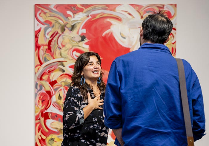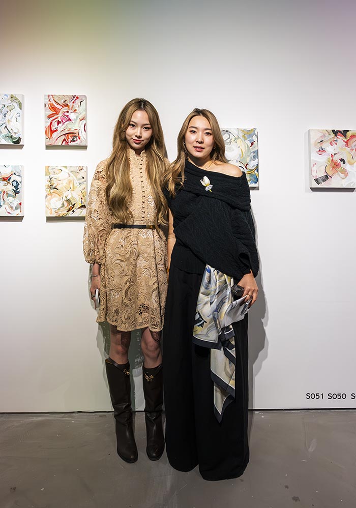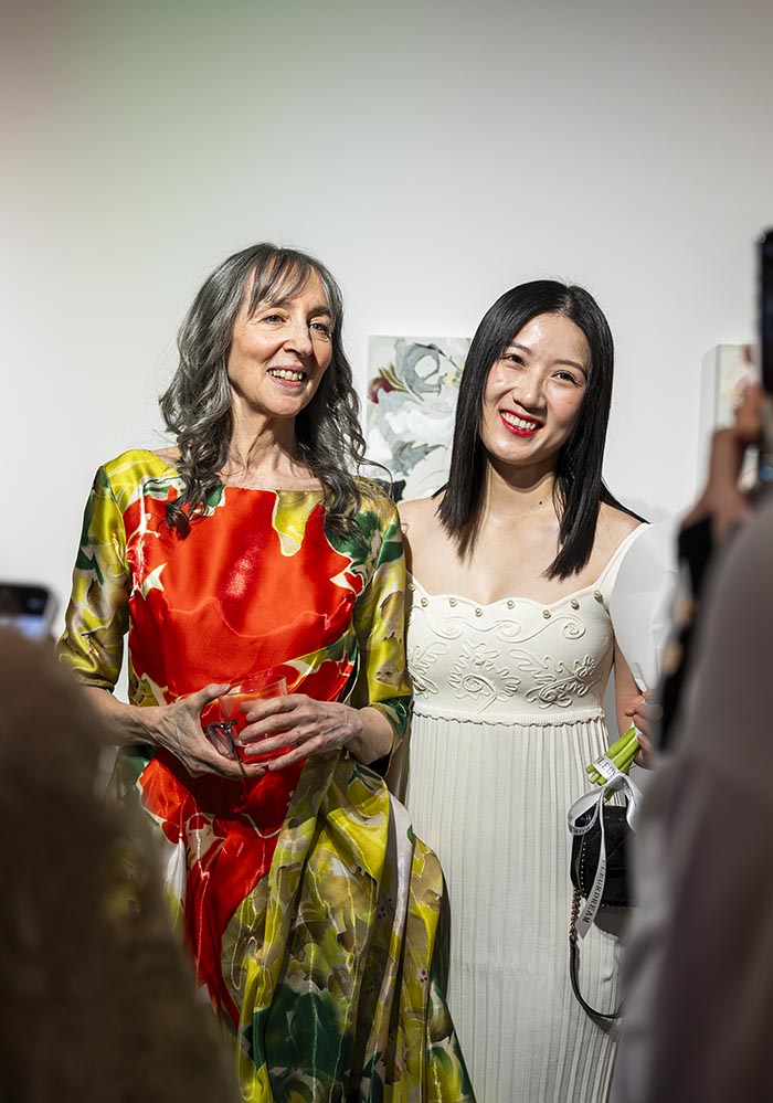 The gown elevated the exhibition into the realm of fashion narrative. It suggested that painting need not remain confined to stretcher bars and gallery walls. Instead, it moved through space, through light, through human form. In that moment, Green’s concept of “molecules of creativity” felt literal — creativity transferring mediums, evolving, inhabiting new dimensions.
