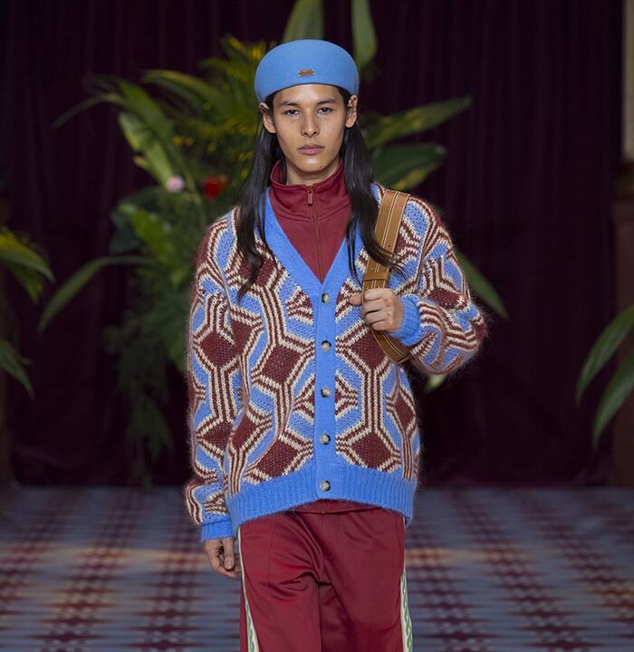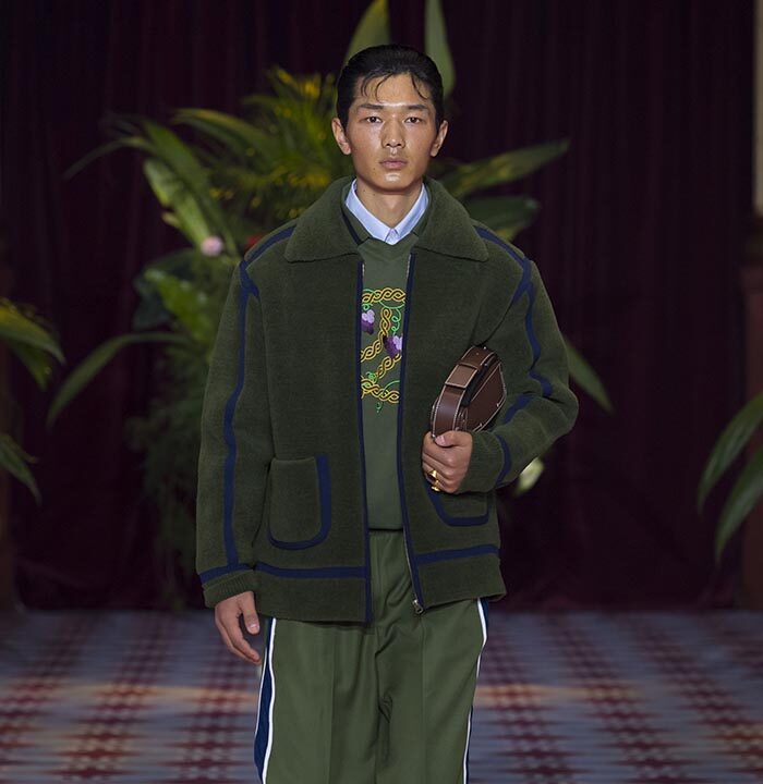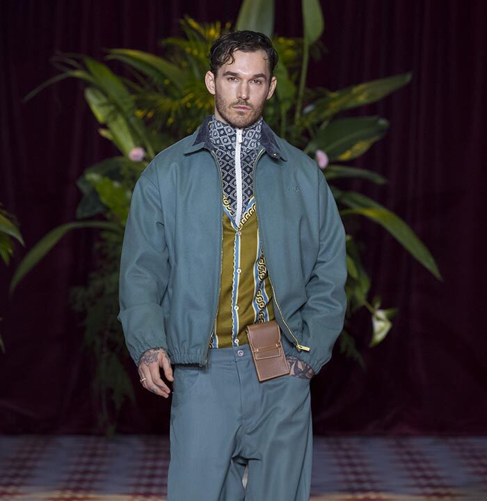 In keeping with this Proustian vision of nostalgia, Drôle de Monsieur’s Fall-Winter 2024 collection is a true alchemy of styles, combining inspirations and eras to bring together sartorial cultures that have always been opposed: the ornamental opulence of the Seventies and Nineties normcore minimalism. Just like Renzo, who created homes for both Gianni Versace and Jil Sander, the silhouettes of this collection could be spotted on a wide range of characters, from Sylvester Stallone to Sean “Puffy” Combs, from Luciano Pavarotti to the Bee Gees.