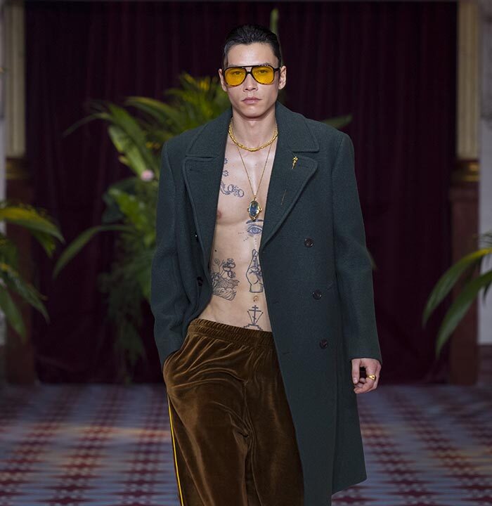 While the space clearly pays tribute to the universe of the transalpine architect – both in its theatricality and heavy ornamentation – the looks themselves are built around personalities, real-life people, guided by the central idea that clothes are made to be worn, again, always… respecting in that sense the purest tradition of ready-to-wear.