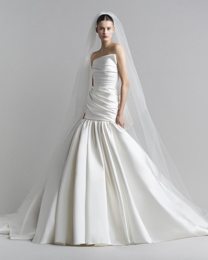 In every look, considered details bring the silhouettes to life. A spray of ivory blossoms spills from a structured corset. A metallic lattice shimmers across a gently flaring skirt. A voluminous-sleeved cape turns a satin column into a striking statement. And an embroidered silk and tulle gown catches the light beneath an ethereal petal-strewn veil. Elegant yet modern, ELIE SAAB BRIDAL Spring Summer 2027 reinvents bridal as a series of dynamic moments: poised, evocative and impossible to forget.