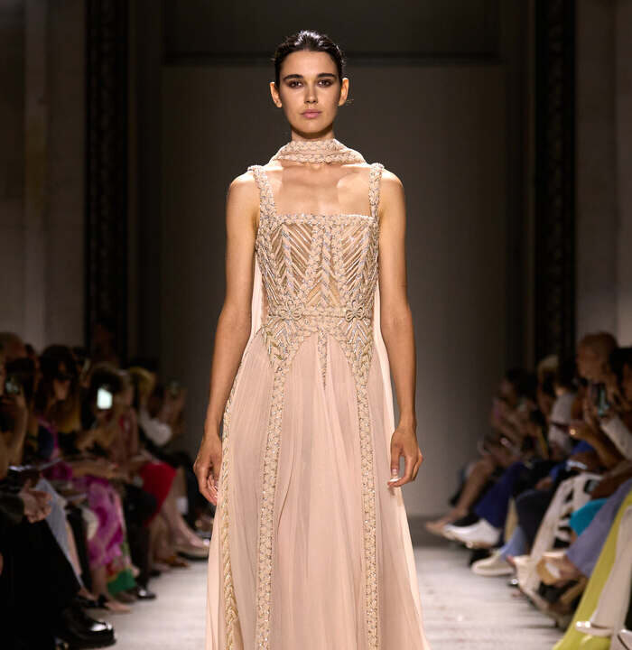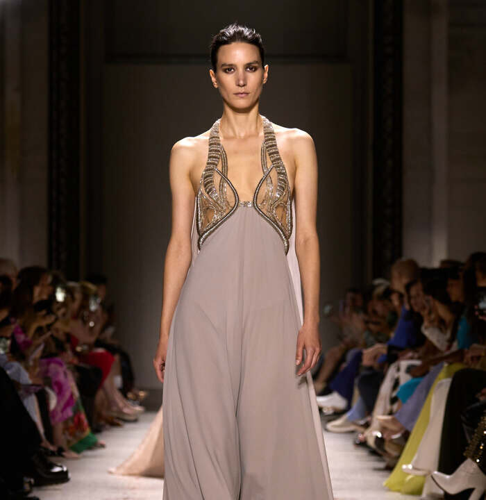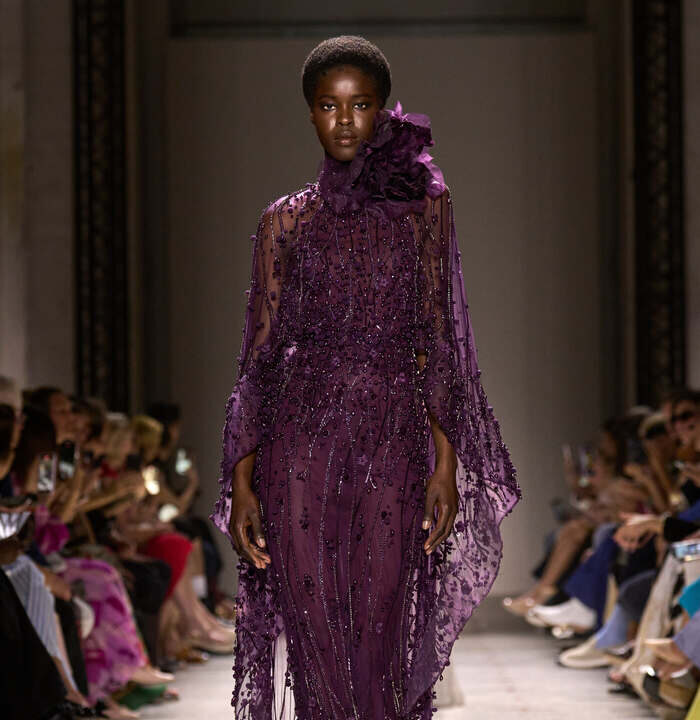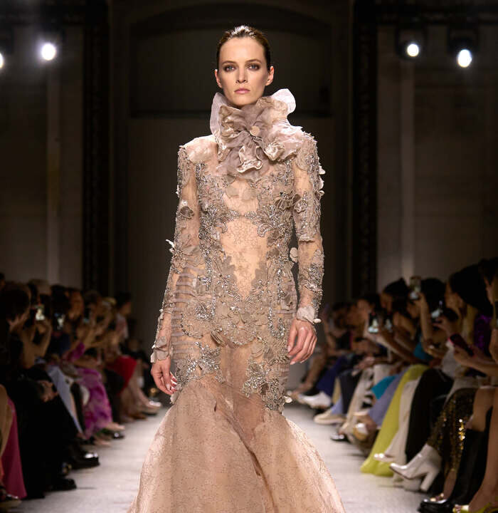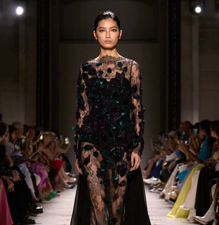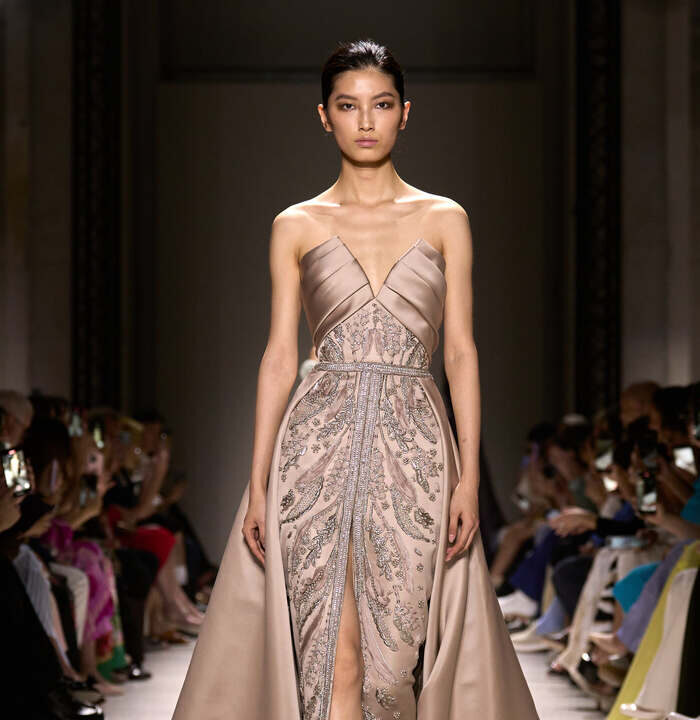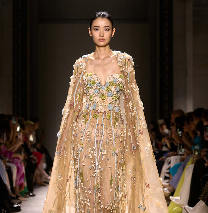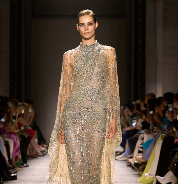 Every musical phrase whispers AN ENCHANTED SERENADE to evoke the goddess among the stars. Rich with the dusha (soul) of Slavic artistry and surreal fantasy, ELIE SAAB harmonizes opulent textures and majestic airs to compose the HAUTE COUTURE FALL/WINTER 2024 collection – a gothic song of shadow and light that carries the imagination to realms of marvelous splendor.