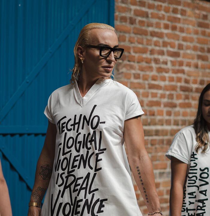 Elton Irlijani International activist, genderless model, entrepreneur, philanthropist, and among the most influential LGBTQ people on Instagram with over 11 million followers. He has endorsed the #Bodyright campaign against digital violence on the internet and will be part of this disruptive catwalk. The event was a stage to request signatures to join UNFPA’s global call to Stop Digital Violence – You can participate also: https://www.globalcitizen.org/es/action/body-right-petition/