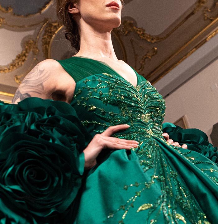 With nearly 180 days of unwavering commitment, each design in “Mirage Éternel” requires hundreds of hours of meticulous craftsmanship. Chancos artisans dedicate weeks to transforming visionary sketches into opulent, awe-inspiring garments. This dedication results in pieces that are not only visually stunning but also bear immeasurable artistic value. The collection seamlessly blends the grandeur of the past with the innovation of the future, ensuring each design remains an eternal statement of beauty. “Mirage Éternel” is more than just a collection; it is an immersive journey through time and artistry. Every silhouette, cut, and embellishment tells a unique story, inviting fashion connoisseurs into a realm of perfection and timeless elegance. Chancos is devoted to pushing the boundaries of fashion, transforming garments into living works of art that celebrate heritage, creativity, and the unbreakable bond between generations.