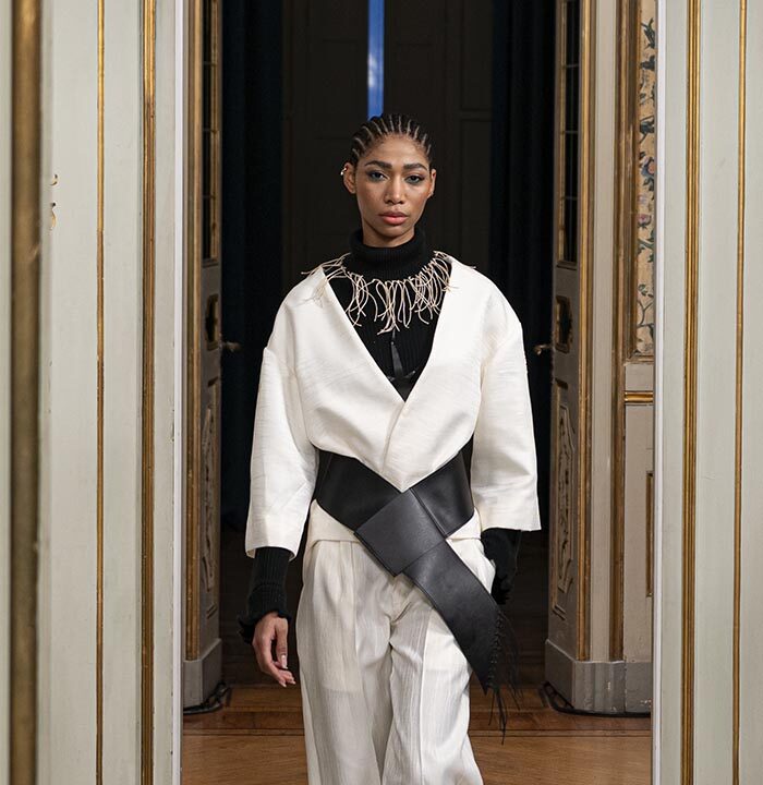 A black-and-white palette dominates the collection—at first glance, classic, yet anything but predictable. Within the contrasts of black and white lies a profound meaning: the battle between convention and individuality, order and chaos, norms and rebellion. Black emphasizes the strength of a woman, while white introduces a contrasting softness, creating tension and dynamism that draws attention and sparks reactions.