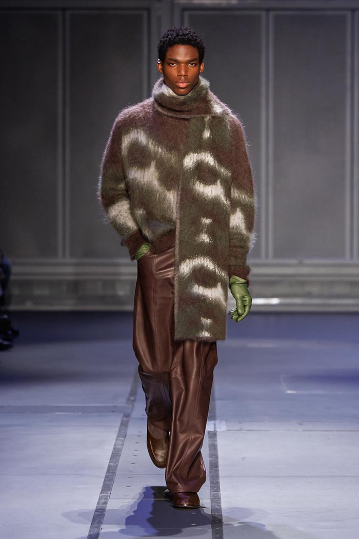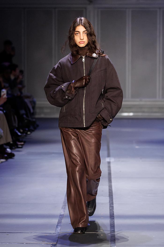 Material inserts further enhance certain silhouettes, culminating in a fully leather ensemble,