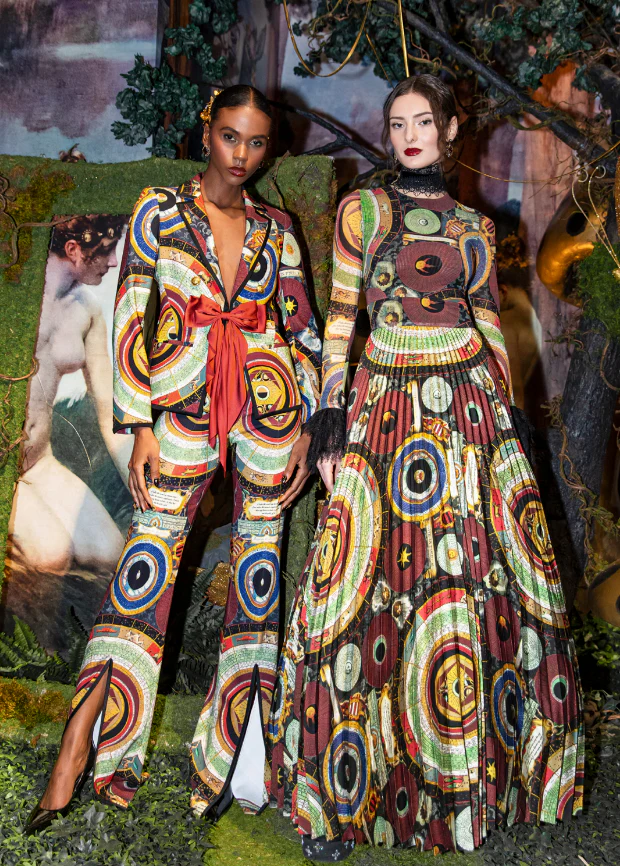 Founded in 2002 by Stacey Bendet with a quest to create the perfect pair of pants, alice + olivia has evolved into a full lifestyle collection known for its whimsical, vintage-inspired aesthetic. The brand’s signature pants, cut slim at the hip to create the illusion of elongated legs, launched a company that now includes ready-to-wear, gowns, shoes, handbags, and accessories. With 35 US freestanding boutiques and presence in over 800 select department stores worldwide, alice + olivia has become a Hollywood favorite with fans including Meghan Markle, Michelle Obama, Beyoncé, and Gwyneth Paltrow. Bendet, who was unanimously elected as treasurer of the CFDA in December 2022, continues to design collections that balance playful femininity with sophisticated style, often incorporating social initiatives like their #aocommuniT collection supporting causes like equal pay.