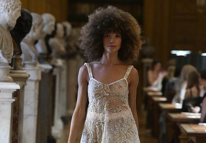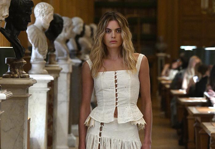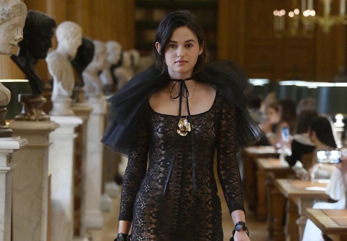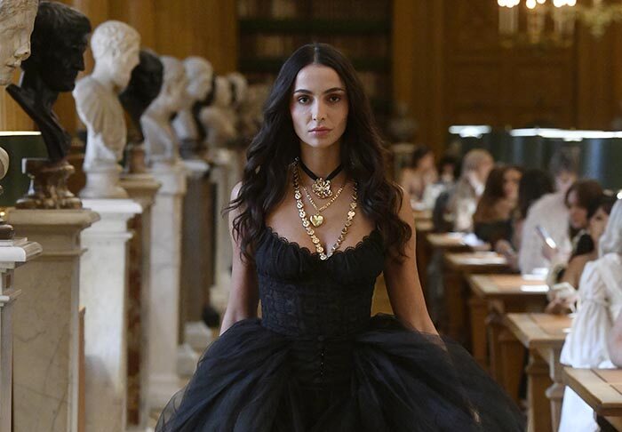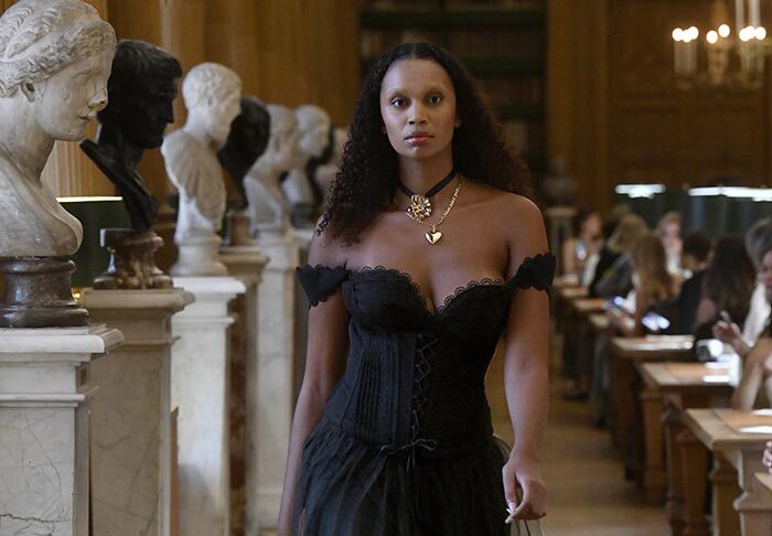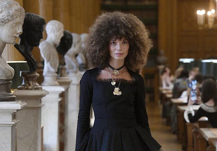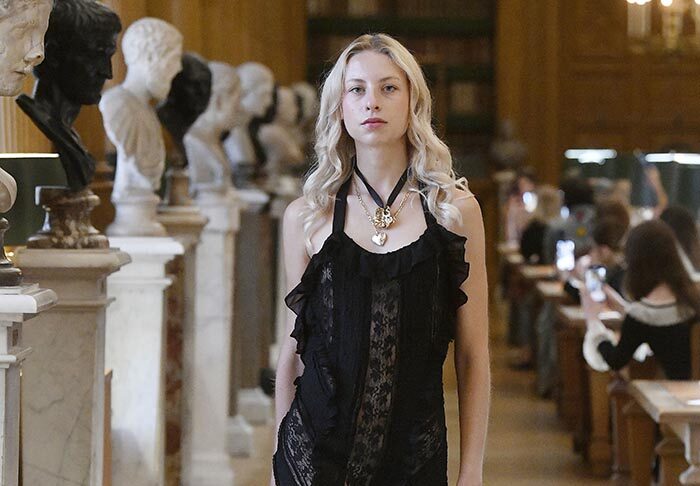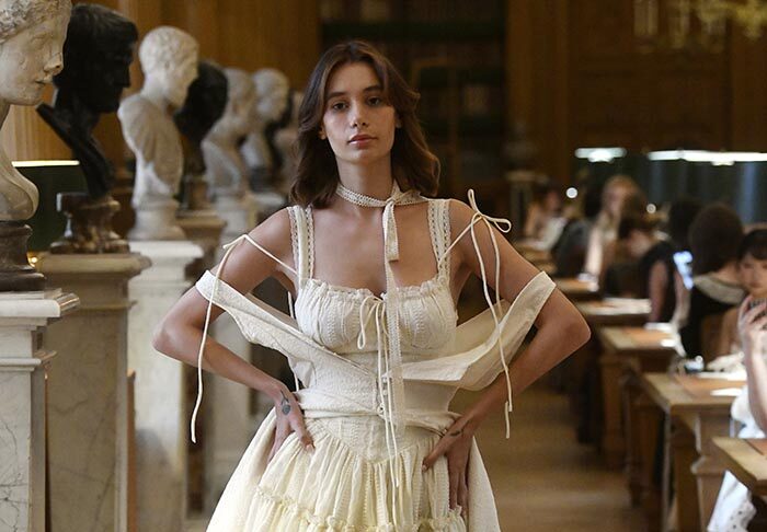 Conceived as a triptych, the collection unfolds in three chapters, each inspired by the maison’s most treasured literary leitmotifs. Co-designers Ariana and Liana Dancu draw upon the interplay of literature and art, weaving cultural references into silhouettes that blur the boundaries between narrative and attire.