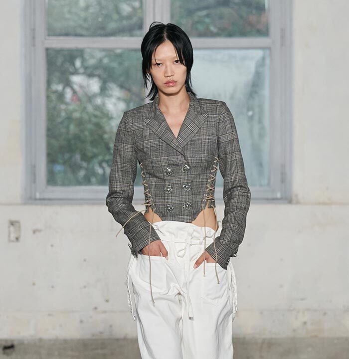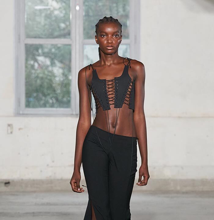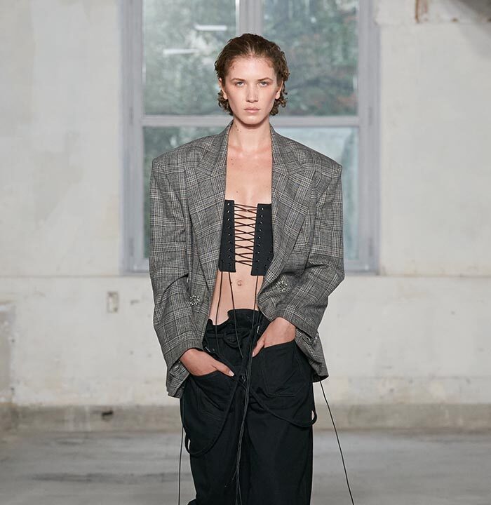 Kristell Bannier started her first corset collection in 2021 under the name of KRIBA. KRIBA’s essence it’s to adapt the historical garment in actual corset.She uses menswear wardrobe details mixing with 70s bikers elements to explore the diverse language of the corset.