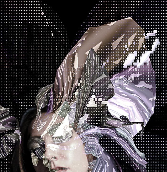 Experiencing the shift in the digital world with home computers and the internet, the ‘digital’ became her attitude to life. Expressing, shaping and exploring this further evolving digital identity is the role of Flora Miranda’s creations.
