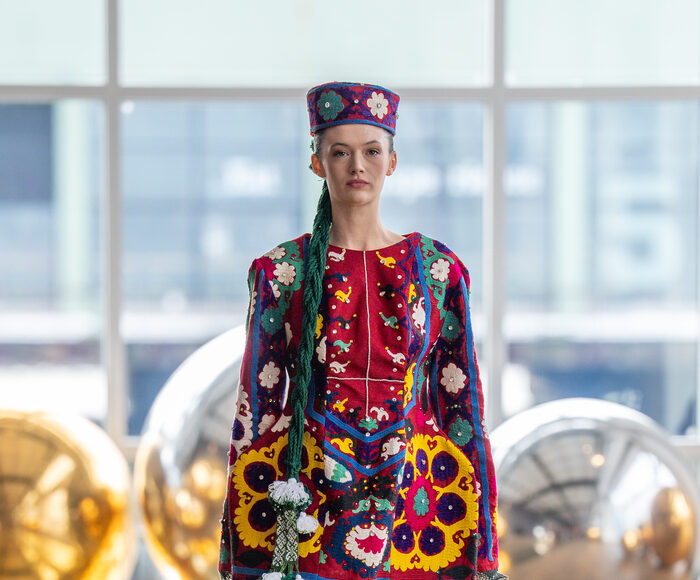 Emerging from Tajikistan, ZHIWJ transforms tradition into wearable art. The designer’s journey began with the debut collection Mountains of Pamir, where red and white symbolized protection and purity — an early vision that ignited a creative fire still driving her work today.