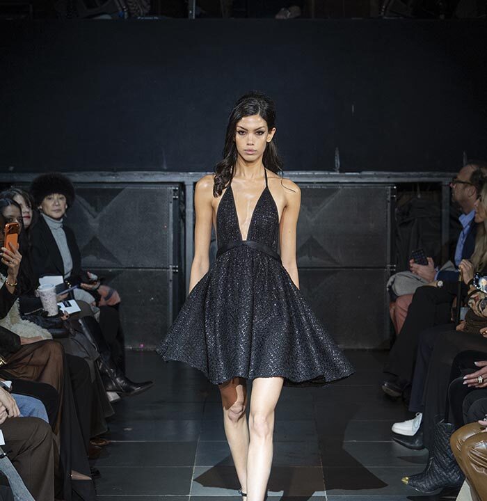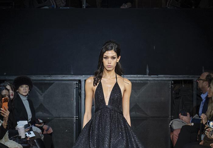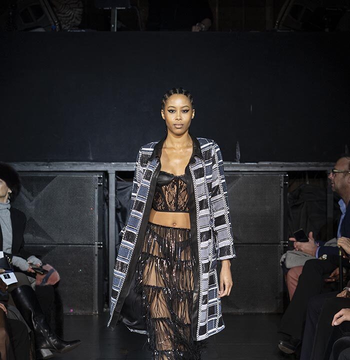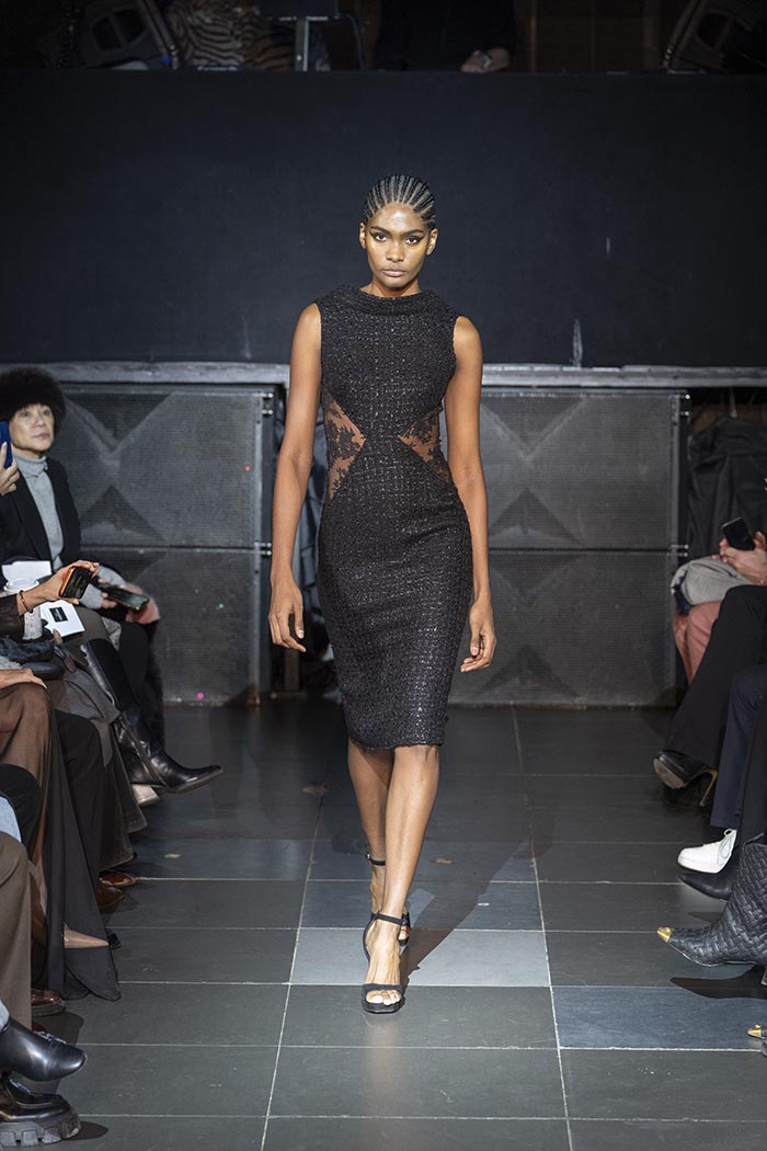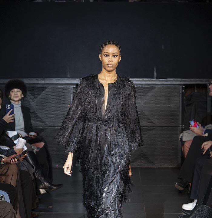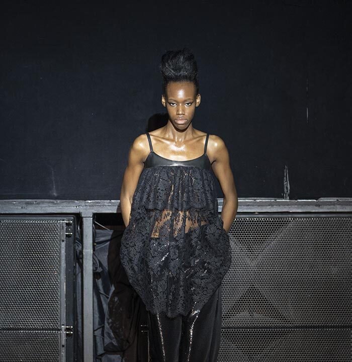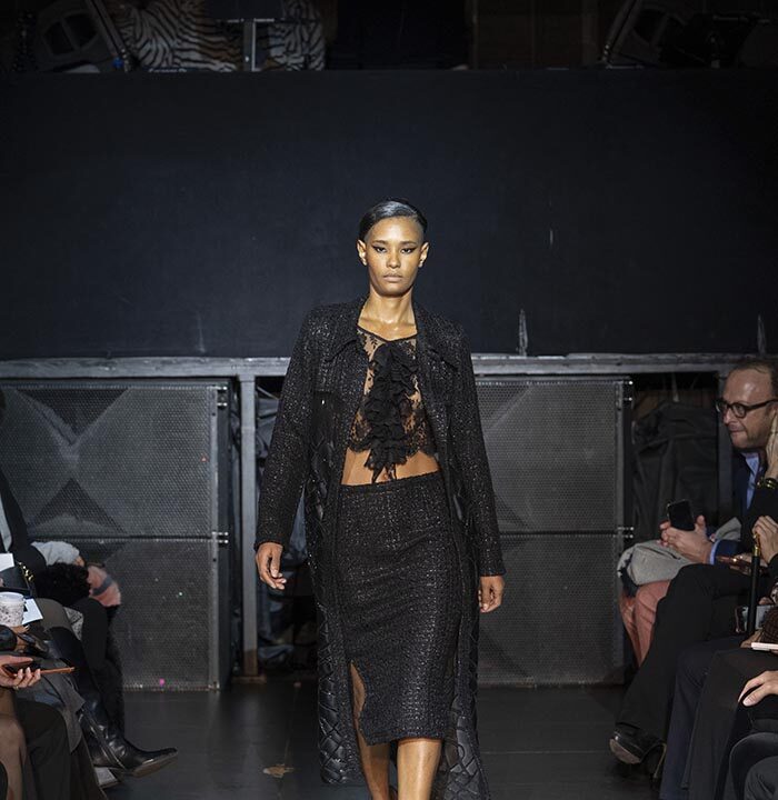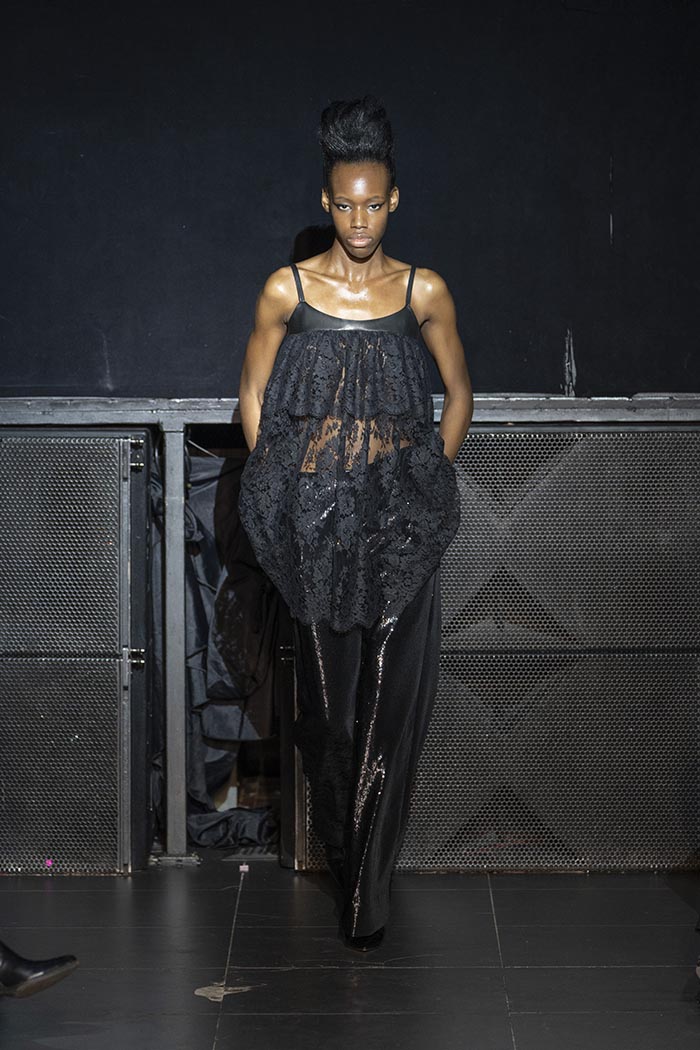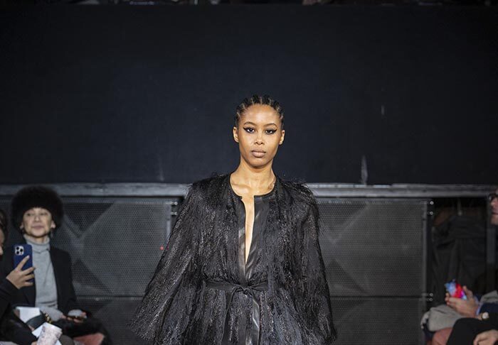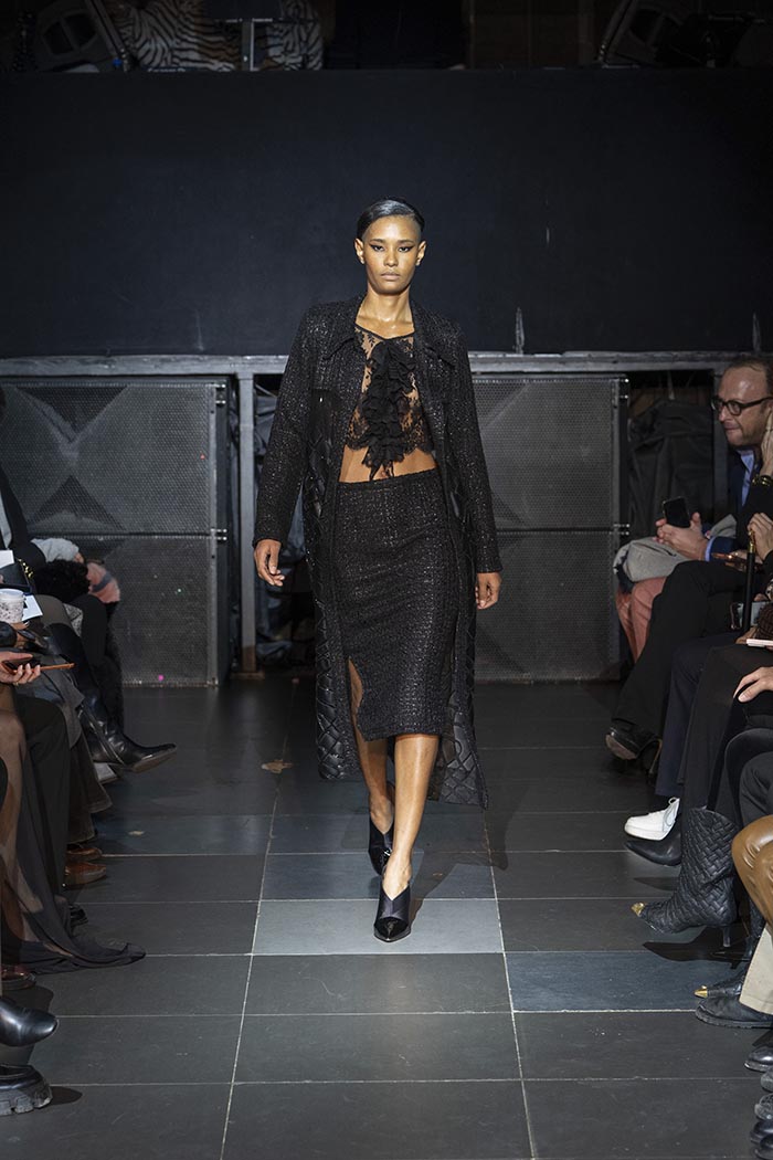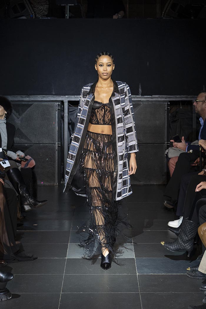 “I wanted to write a story about finding strength in all the blackness,” said Anderson. “We’re in a black time, and you can find an inner strength in that. Throughout the collection, there’s all these layers and different fabrications that layer on top. It’s all in the details and it’s all for the woman to enjoy. It isn’t for everyone.”