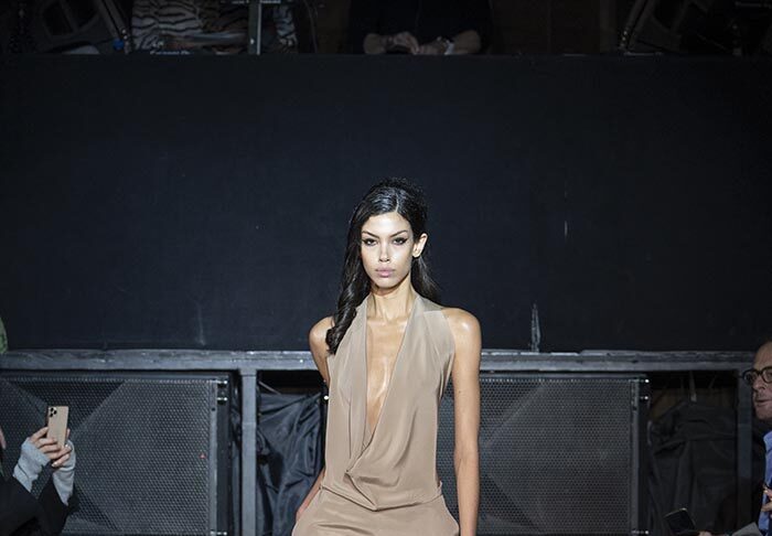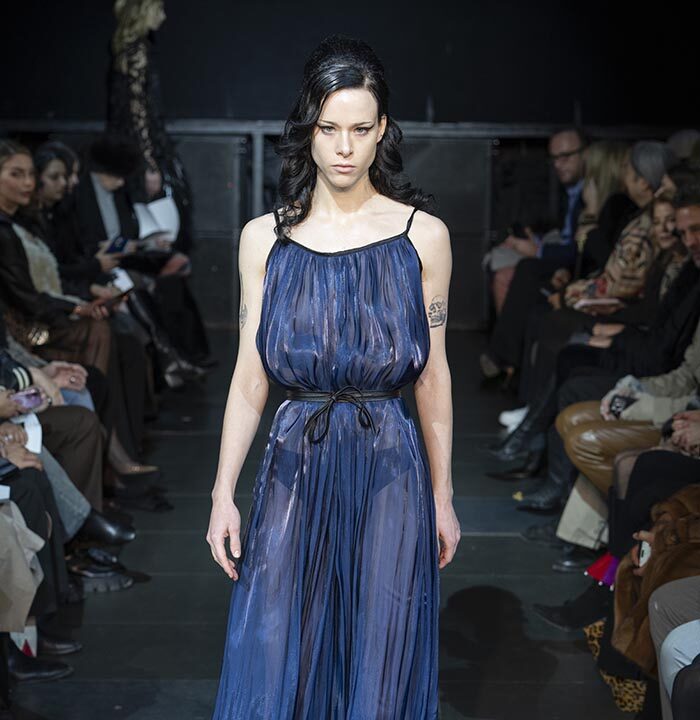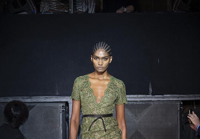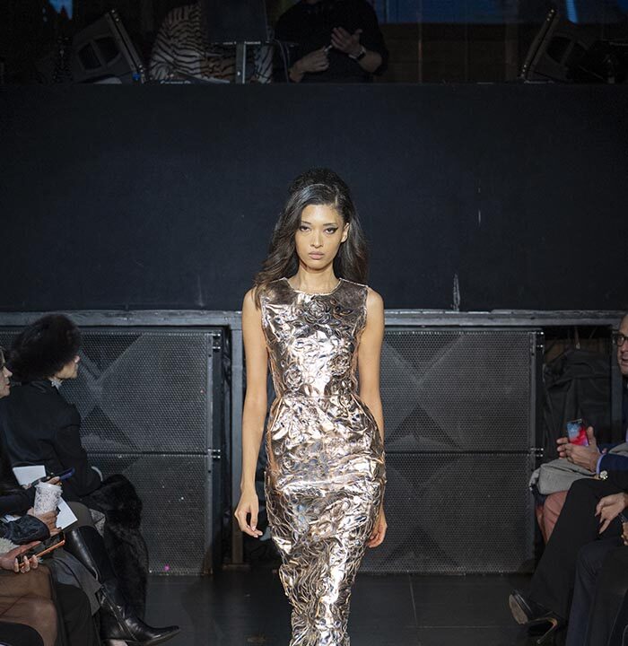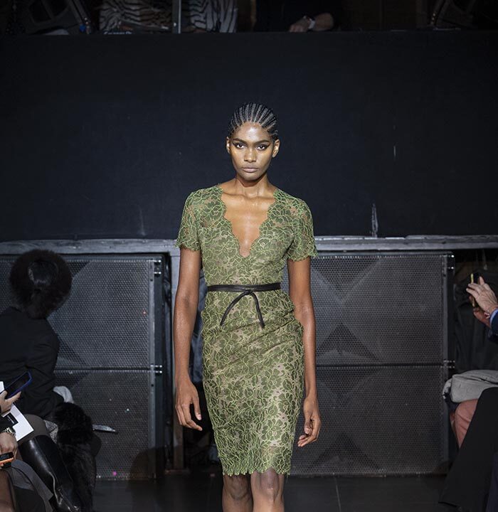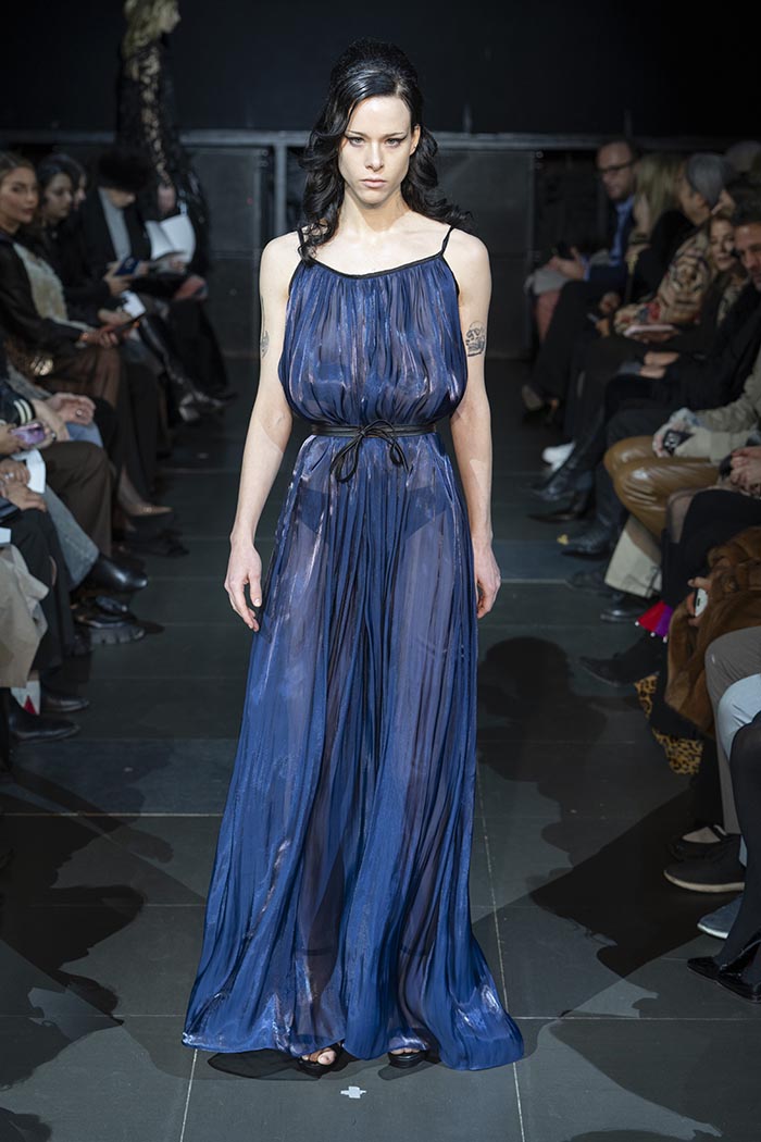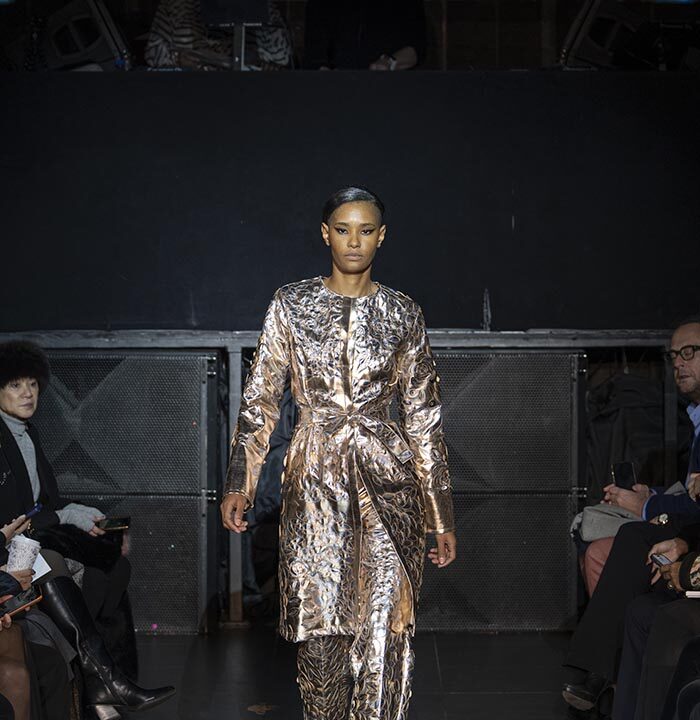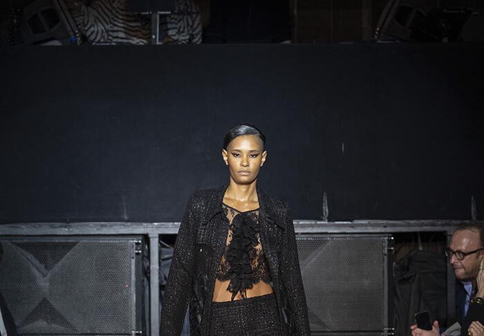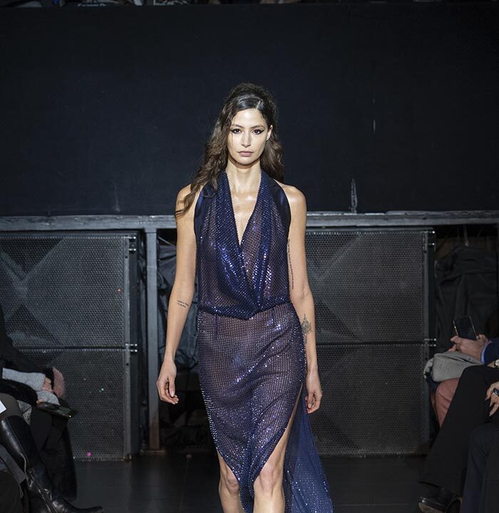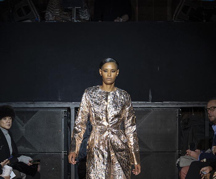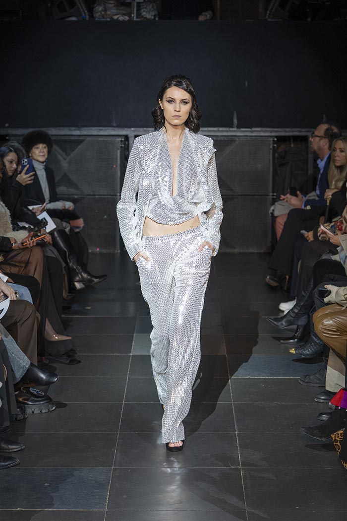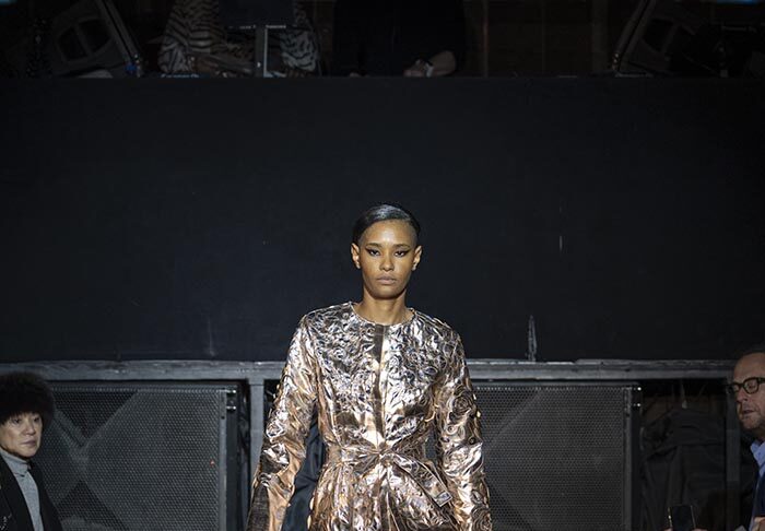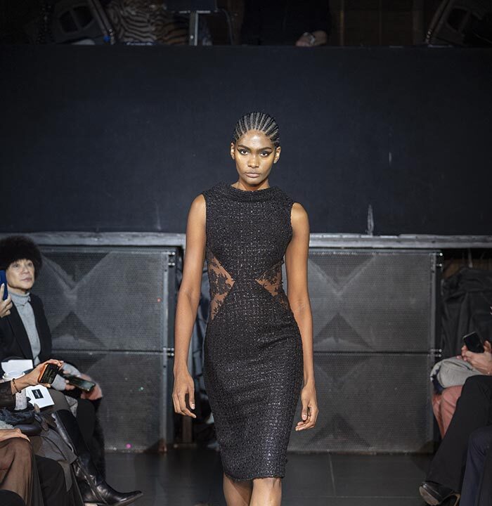 “I wanted to write a story about finding strength in all the blackness,” said Anderson. “We’re in a black time, and you can find an inner strength in that. Throughout the collection, there’s all these layers and different fabrications that layer on top. It’s all in the details and it’s all for the woman to enjoy. It isn’t for everyone.”