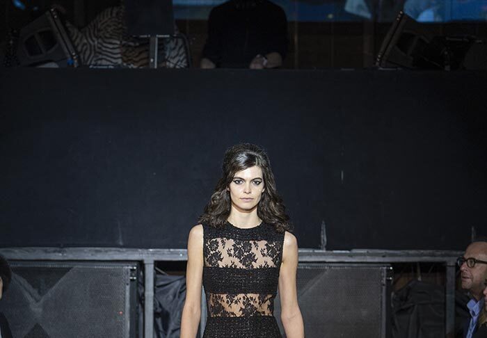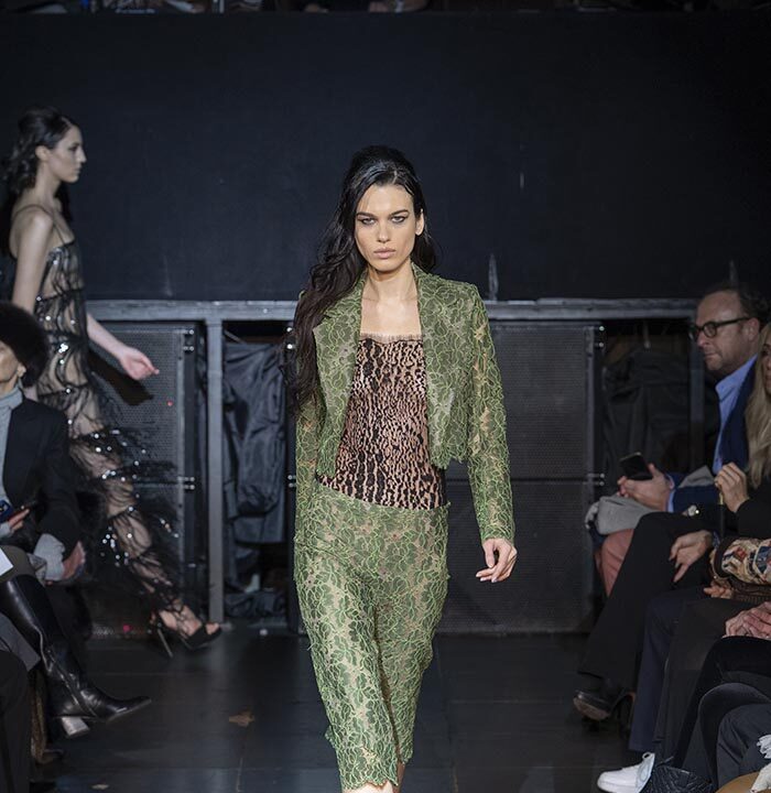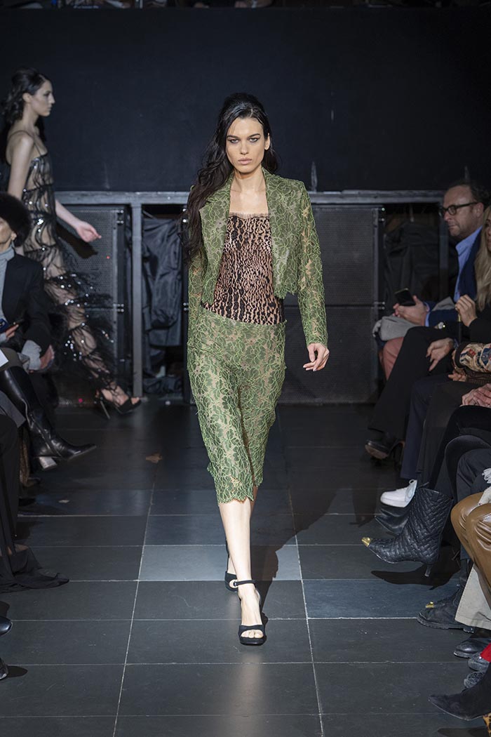 Anderson presented 34 runway looks in a variety of fabrications, including his brand signature Chantilly lace, wool tweeds, tulle, chiffon and metallic laser-cut vegan leather.