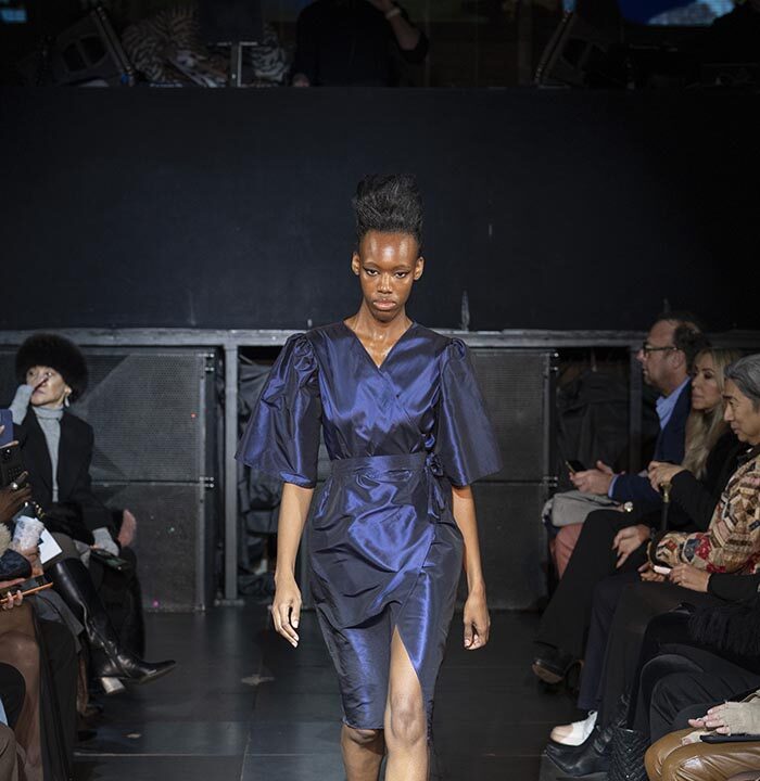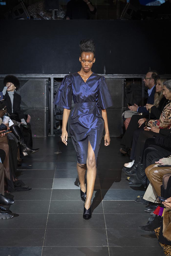 Anderson’s inspiration for the season came from the Blues and the great singer / songwriters such as Nina Simone and Amy Wineshouse, among others. Tony Award nominee, Amber Iman opened the fashion show with a rousing rendition of Simone’s “Feeling Good.”