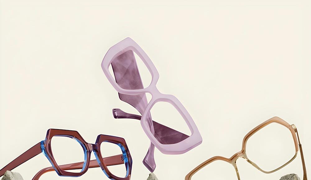 Play with some asymmetry, oversized silhouettes, unexpected color combinations. Geometric frames hold their own even in loud outfits.