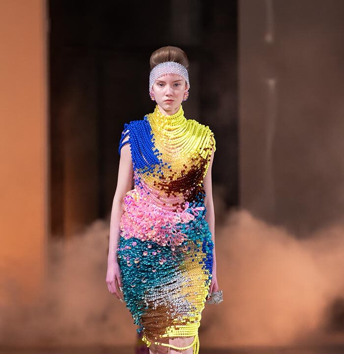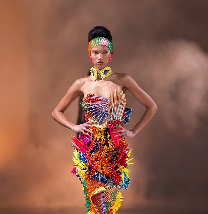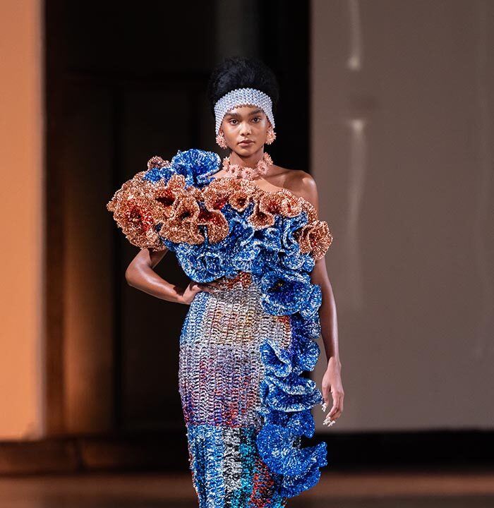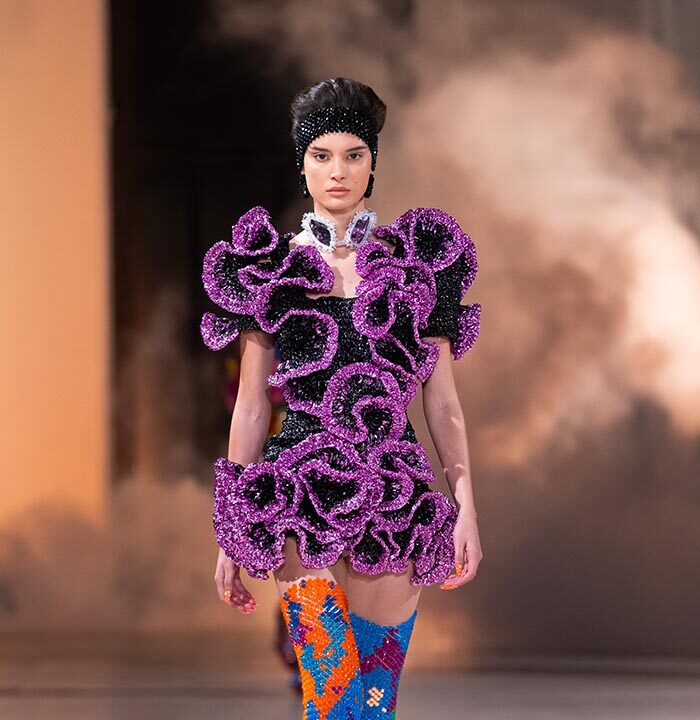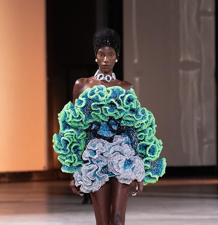 When the metamorphosis reaches its climax, she is no longer the woman she used to be. She’s something else. Taller, freer, more vibrant. She embodies the Germanier vision: a being who transcends norms, who blends nature and artifice, chaos and harmony. She becomes a living sculpture, a manifesto of rebellion against toxic perfection.