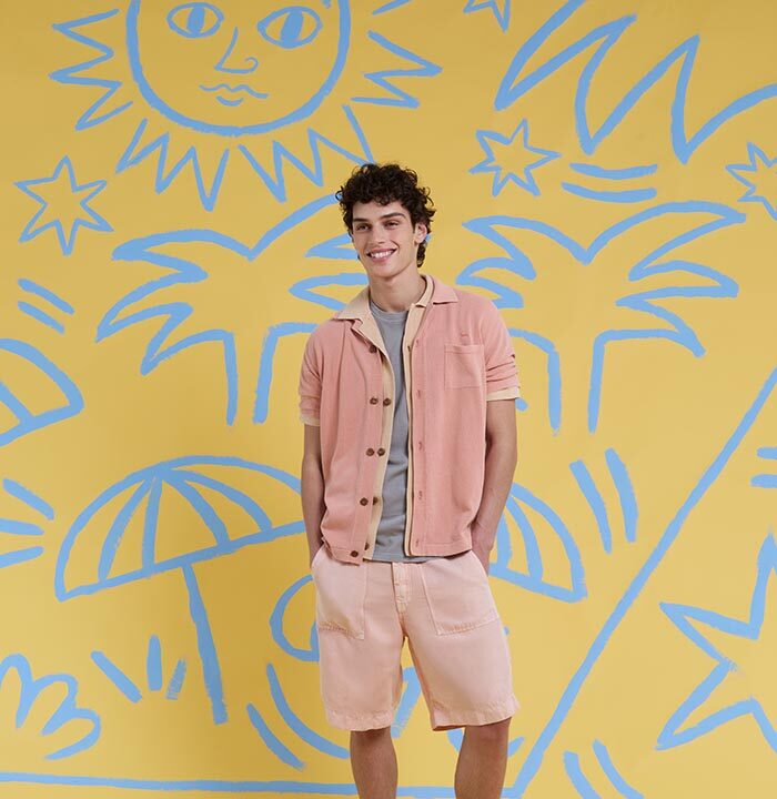 Cheerful, unfiltered, bursting with life—this is the Mediterranean summer in full bloom, echoing terrace lunches, Vespa rides, and the hand-painted ceramics of the Amalfi Coast. The palette leans into nautical blue, fuchsia, sunbeam yellow, citrus orange, and poppy red, softened by white and beige. Traditional majolica designs get a graphic geometric twist, while stripes are reimagined with micro and macro clashes in multicolor or brushstroke effects, as seen in the reinvented Piazzetta shirt.
