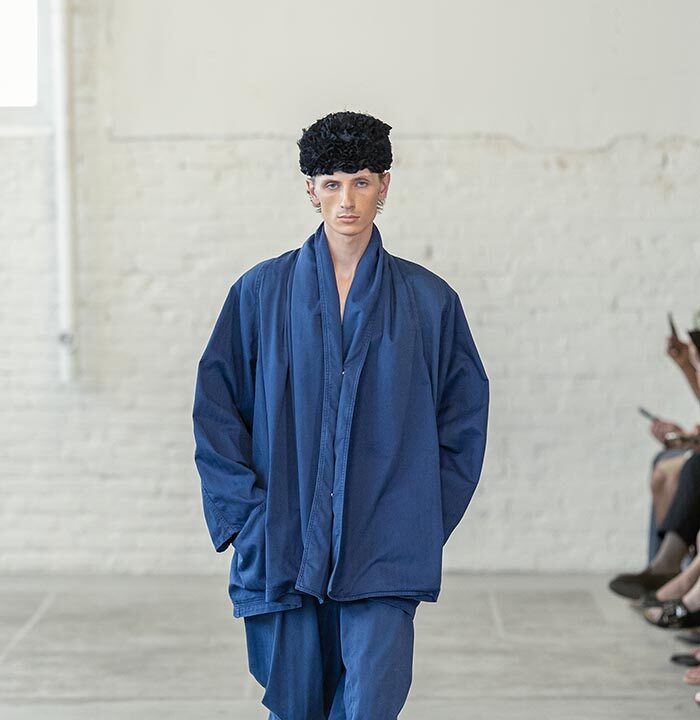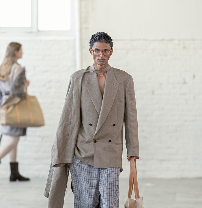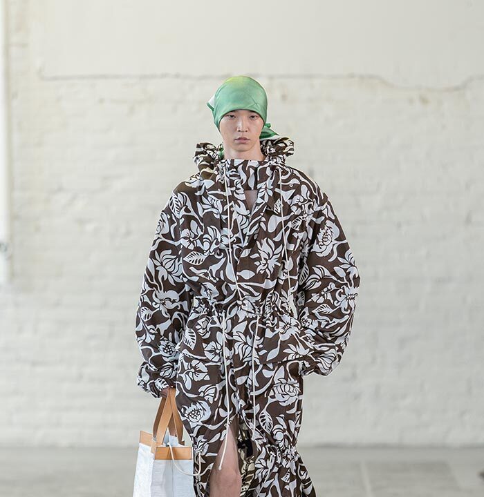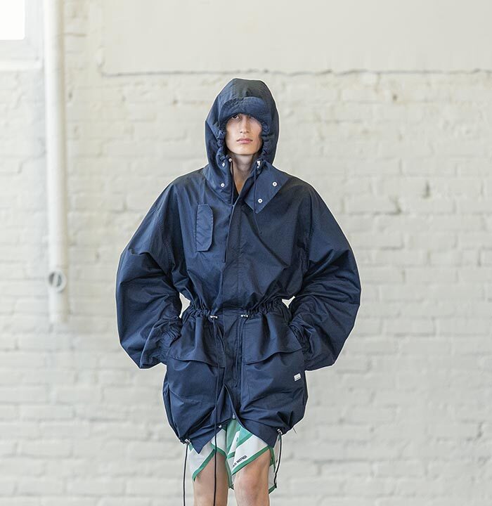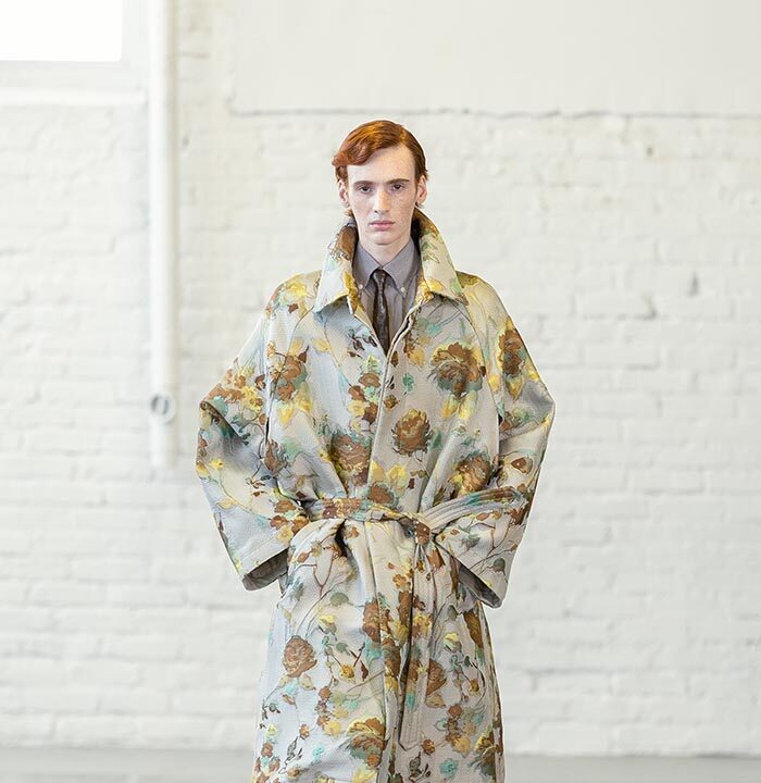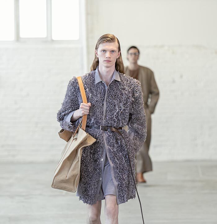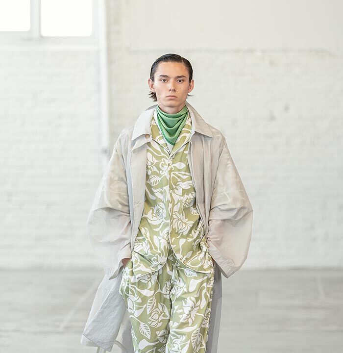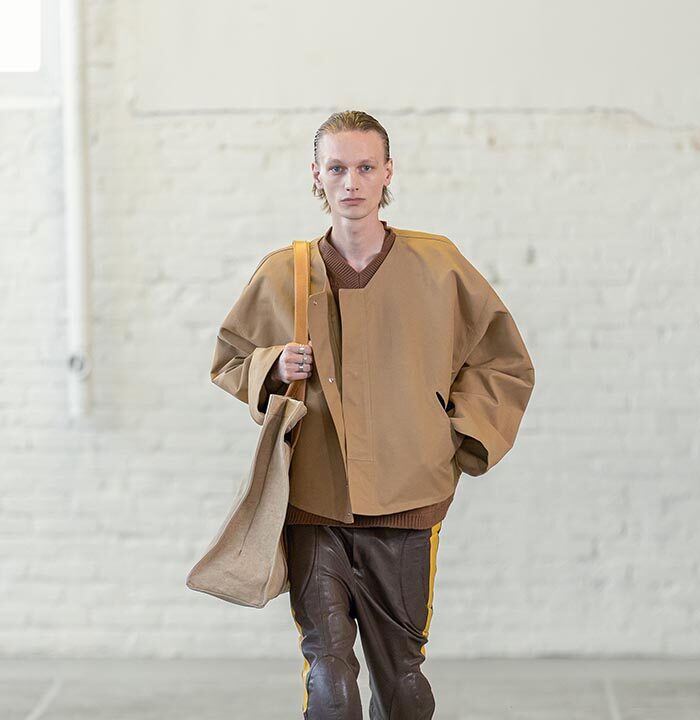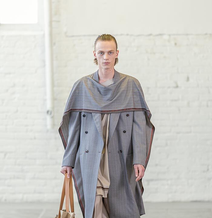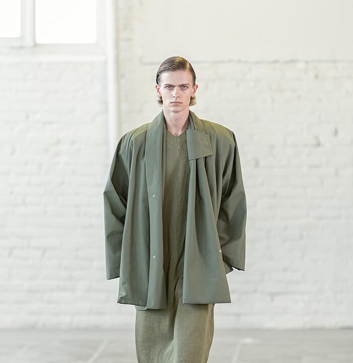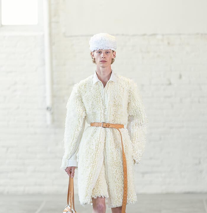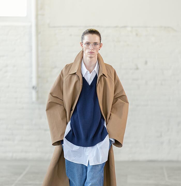 Spring Summer 2026 is a push for the sublime for a time that has long forgone it. Mayner’s long-held interest in the sense of shelter offered by clothes has loosened—here they are driven by a warmth, a humanity. These clothes are an invitation to others, not a barrier nor a defence.