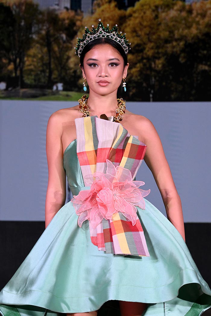 NEW YORK, NEW YORK – SEPTEMBER 07: A model walks the runway wearing designer Cebu Couture during the NYFW hiTechMODA Season 12 Production at Hard Rock Hotel New York on September 07, 2024 in New York City. (Photo by Slaven Vlasic/Getty Images)