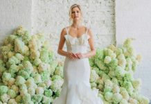 Featuring architectural details layered with untamed florals, the 2020 Carol Hannah collection explores elements of a lost sculpture garden.