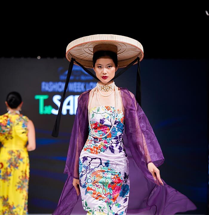 TSAFARI: Ms. Ho Tran Da Thao, fashion entrepreneur and creative soul based out of Singapore and Saigon, is the driving spirit behind the Tsafari brand of womenswear and shoes. An alumnus of Douglas Mawson Institute of Technology (TAFE SA), her journey in fashion began with winning the Mercedes-Benz Asia Fashion Award 2004, representing Vietnam. She received the International Young Fashion Entrepreneur Award 2008 from The British Council, and was awarded the VGAC Australian Alumni Award for Media, Culture and Arts 2014. She has had wide industry exposure, having worked in Itochu-Prominent Corporation and some well-known Vietnamese fashion companies. She is the Founder and Creative Director of the Tsafari Label. Her love of Culture and Nature brings a unique identity and meaningful stories into her TSAFARI designs and collections. She aims to preserve Vietnamese hand-made techniques and traditional culture by ensuring a sustainable work for women artisans and seamstresses as she continues to expand her creative vision, soaking in creative influences from across the world. With the stunning designs models were adorned in semi precious jewels that complemented the colourful designs.