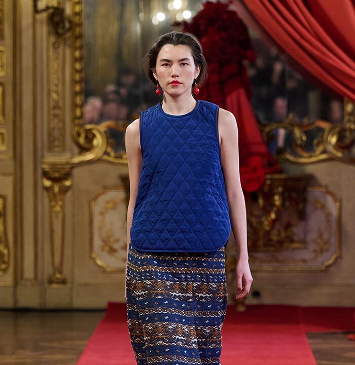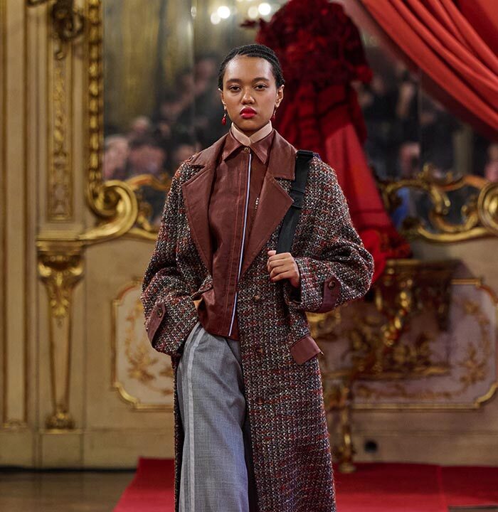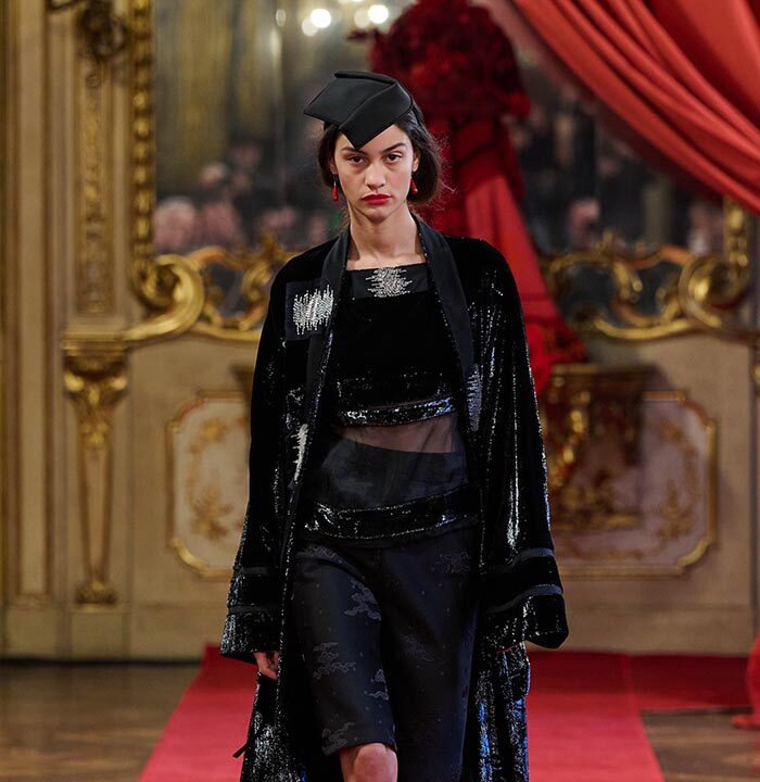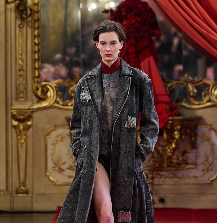 The red thread binding art and care extends beyond the walls of Palazzo Clerici with The Weaving of Light, a project promoted by the HUI Foundation. This intimate and powerful experience goes beyond the runway: LeSciure of the association Coltivare la Città, a group of women who have been contributing to collective well-being for over thirty years, and young Chinese participants, guided by Chinese artist-therapist Yuan Yuan, have woven red threads onto ceramic fragments, transforming each fracture into a symbol of hope and resilience. This collective artistic experiment has united generations and cultures. The project exhibition is open until March 31 at the maison’s showroom in Via Tortona 14, Milan.