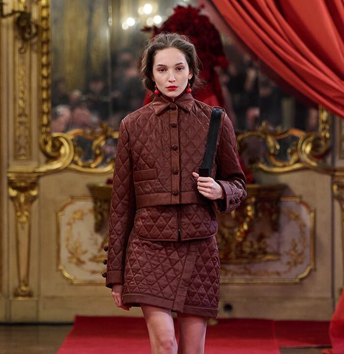 Light is also the inspiration behind the HUI Fall/Winter 2025 collection, drawing from the myth of dawn and the rising sun to convey a message of renewal through the encounter of Eastern mythology and Western art history. The brand, which integrates the essence of Chinese culture into contemporary fashion, continues to reinterpret classic motifs in today’s designs with FW25. Qing Dynasty embroideries, such as the sun and clouds—symbols of imperial power—are reimagined in layers of semi-transparent organza, evoking the sensation of sunlight filtering through the clouds.
