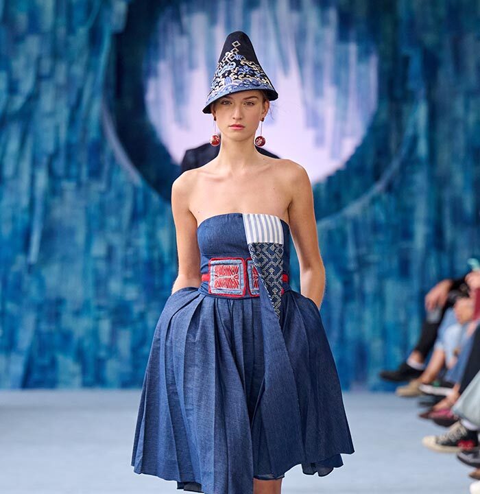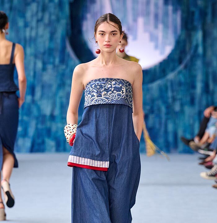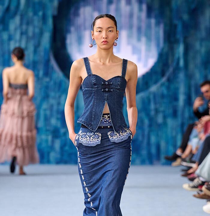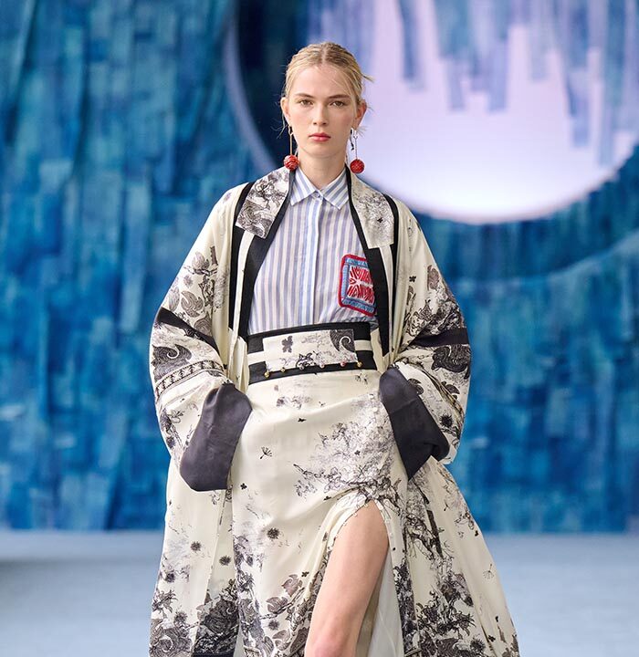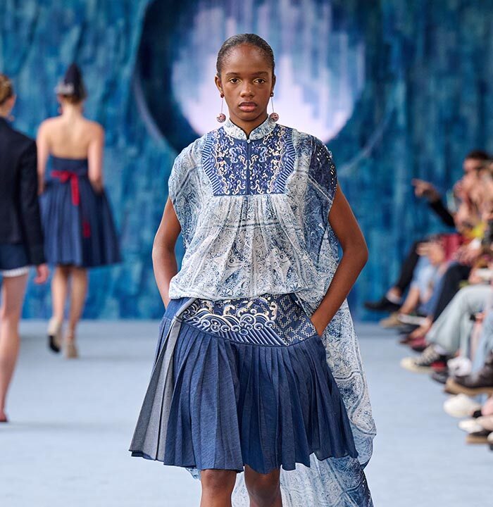 Pictorial patterns explode on the surface of their garments, among which one can recognize sea cliffs, a symbol of power in Chinese culture, and bouquets of butterflies and peonies, a paradigm of the feminine soul, made with the indigo dyeing technique typical of the Miao people, in which the brand’s ancient heritage is hidden. Once again, the right blend of tradition and innovation creates unique pieces in which the elegance and strength of women can be found, to accompany them on their unstoppable journey towards an ever-brightening and ever-changing future. In a word, infinite.