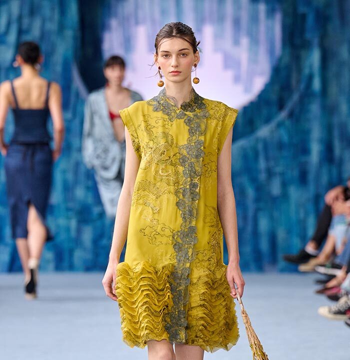 The traditional itinerary among the wonders of Europe that young aristocrats undertook before their entry into society is combined with the brand’s indigenous matrix – centered in the ancient five-character poems of Du Fu from the Tang Dynasty – and its customary focus on women, suggested by the profile of famous female travelers capable of overcoming gender barriers and thus rewriting their lives. Such as the writer and traveler Sanmao, an icon of female independence and the protagonist of an existence with legendary overtones, and Wang Xiaomei, director and founder of the “Hands on Memory Museum,” who has made the protection of local artistic heritage the heart of her itinerant efforts. Women -muses to whom, once again, designer Zhao Huizhou has entrusted the evolution of her poetics to make them inspirational models for women in contemporary times.